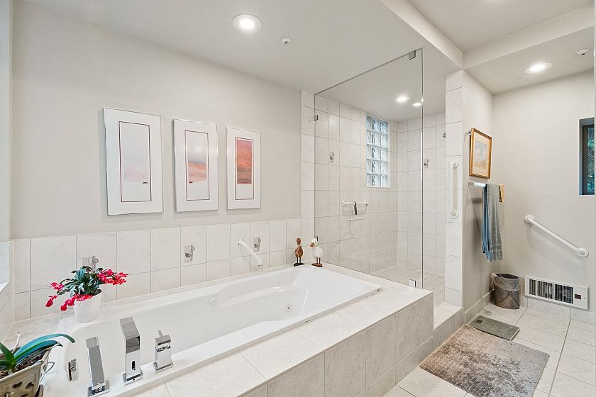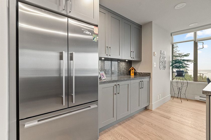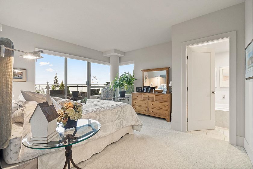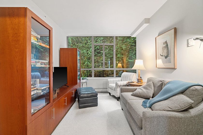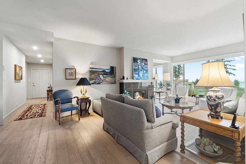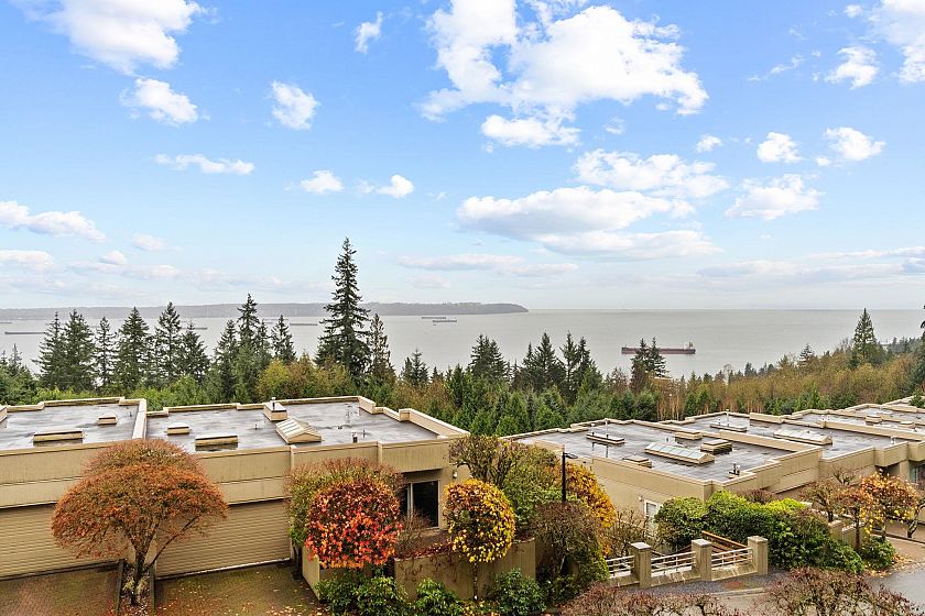 Welcome to Deer Ridge, a quiet and impeccably maintained community offering the best of both worlds: panoramic ocean views out front and a serene forest backdrop behind. This southwest-facing corner home is filled with natural light and a warm atmosphere throughout. The renovated 2-bedroom, plus den, 2-bath layout features Bosch appliances, hardwood floors, and thoughtful updates within a meticulously cared-for building. A charming kitchen nook opens onto a private balcony, the perfect place to take in the sweeping ocean and city views, while enjoying the peaceful greenery behind. A truly special residence that captures comfort, quality, and West Vancouver tranquility.