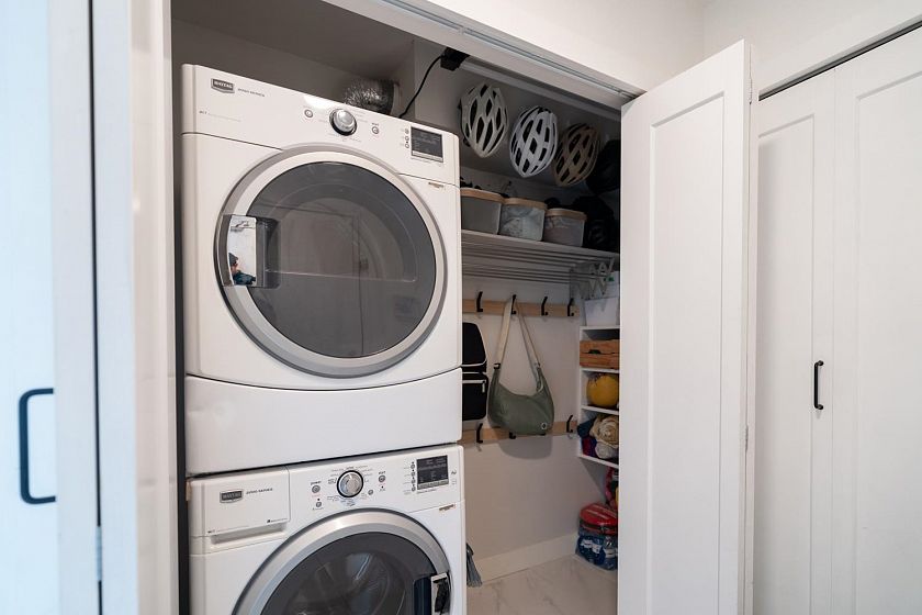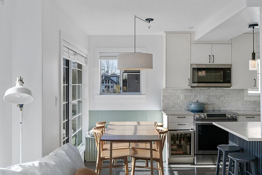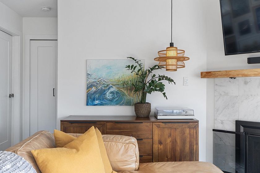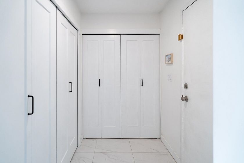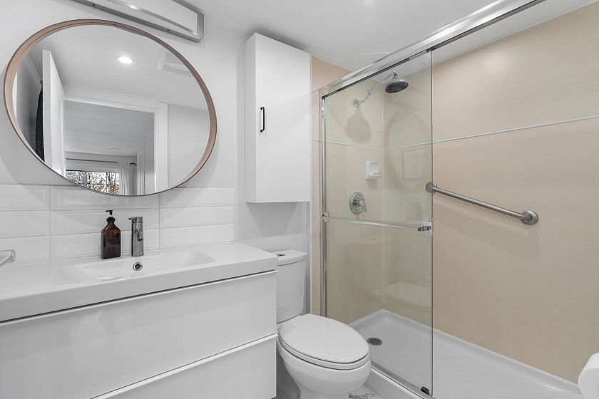 Location meets contemporary living in this beautifully renovated 2-bed, 2-bath corner home just steps from Trout Lake, SkyTrain, and the vibrant energy of Commercial Drive. This bright, move-in-ready condo has been fully transformed with a new open kitchen featuring modern cabinetry, quartz counters, newer appliances, and recessed lighting. Both bathrooms have been thoughtfully updated. Enjoy wide-plank engineered hardwood floors with added soundproofing, custom blinds throughout—including blackout blinds in both bedrooms—and custom bedroom closets for exceptional storage. The cozy gas fireplace, fir mantle, and temperature control for year-round comfort. A well-run, proactive strata provides peace of mind. 1 parking & 1 storage locker