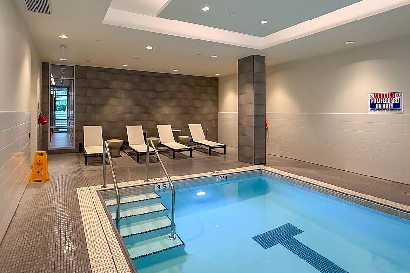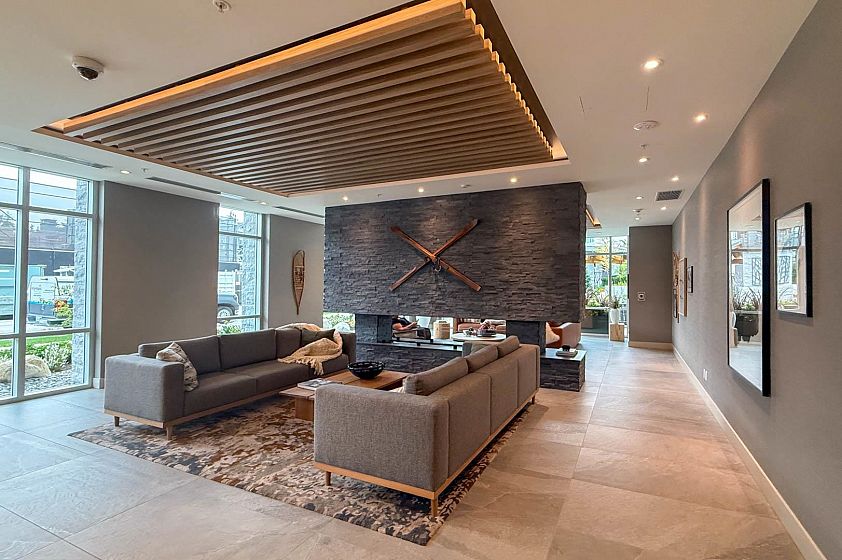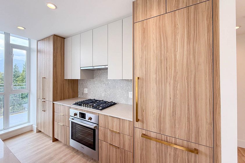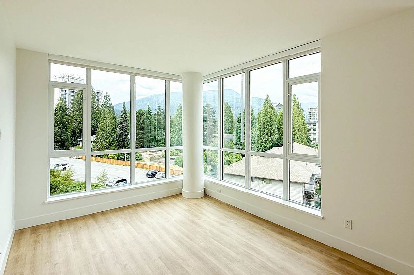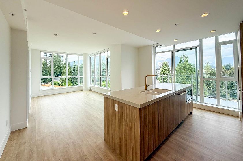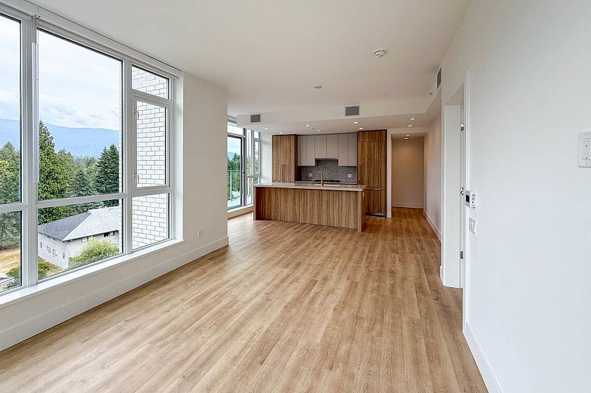 Welcome to the exclusive CLUBHOUSE Tower at Parkside at Lynn. This brand-new, A/C, UNFURNISHED top-floor 2 bdrm, 2 bath home was handpicked as the best in the bldg, featuring upgraded finishes, wide-plank h/w flrs, & floor-to-ceiling windows w/ panoramic mountain views. The open-concept layout includes a gourmet kit w/ Bosch appl, 5-burner gas cooktop, panel-front fridge/d/w, quartz island, gold hardware & built-in microwave. The master suite boasts dbl vanity & large walk-in shower. Enjoy access to the Lynn Club w/ fitness studio, indoor pool, lounge & outdoor entertaining space. Located at the edge of Kirkstone Park, steps to Lynn Valley Centre & trails. Rent incl. hot water, gas, 2 u/g parking stalls & storage locker. No pets.