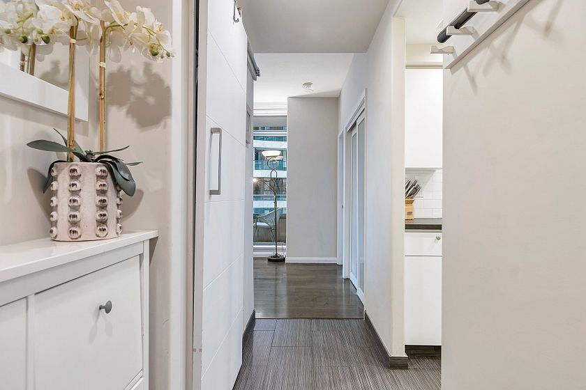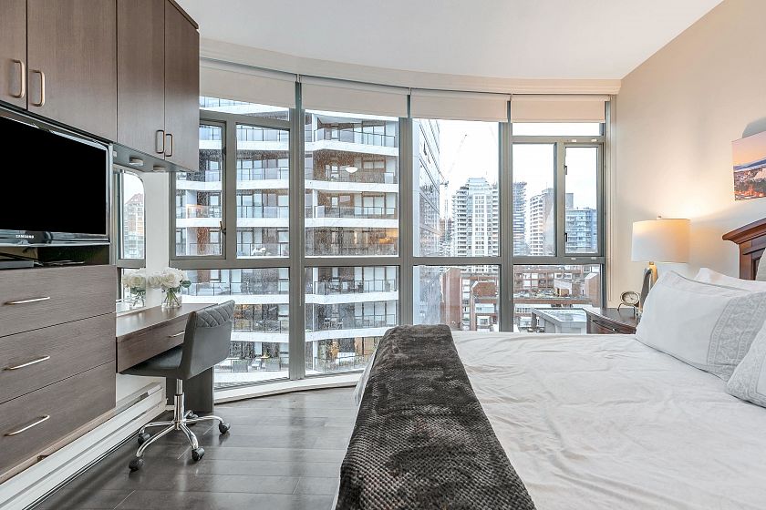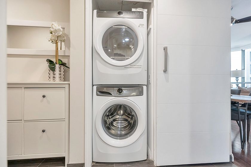 Welcome to Portofino, a well-maintained building located in Yaletown. This bright and spacious 2-bedroom, 2-bathroom corner unit offers a functional layout with a desirable mix of ocean and city views. The open-concept living and dining area features large windows that fill the home with natural light. The kitchen provides ample storage with walk pantry and counter space, ideal for everyday living and entertaining. Both bedrooms are generously sized, with the primary bedroom offering an ensuite bathroom and excellent separation from the second bedroom for added privacy. Enjoy your morning coffee or evening relaxation on the private balcony while taking in views of False Creek and the city skyline. Conveniently located just steps from the Seawall, English Bay Beach, and Granville water bus