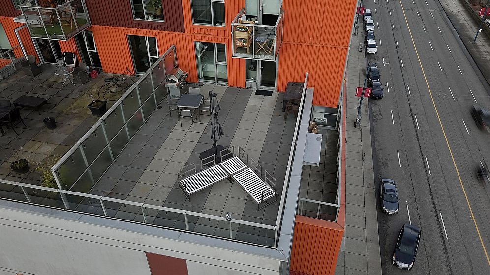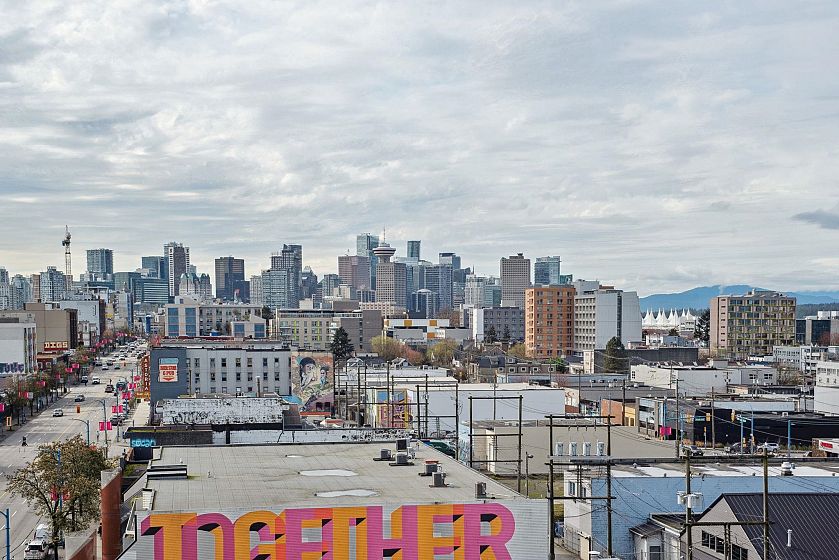 One of the few AirBnb allowed strata buildings! Seize the opportunity to host the FIFA World Cup! HUGE PRIVATE 557 sq ft TERRACE. This Corner suite boasts a huge SW patio that offers stunning views of the city skyline, sunset, lights, mountains + water! This outdoor space is ideal for hosting gatherings but also a private oasis to soak in the sunset–truly an urban sanctuary. Inside, this 2 bed, 1 bath is thoughtfully laid out on the SW corner, optimizing natural light, large flex space, separated bedrooms for privacy. Strathcona Village is a 7yo, well run, concrete building w/ warranty. Steps from Strathcona Beer Company, cafes, parks, schools, 5 min to Commercial + Gastown. Vibrant yet upcoming area! This huge patio is that RARE opportunity - reach out to view! Empty and ready to move in!