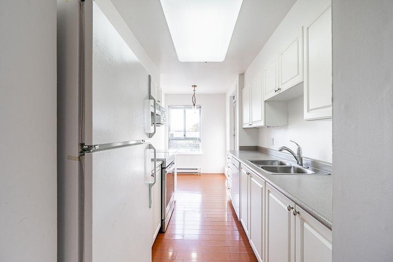 Wonderful opportunity awaiting first time home buyers, and young families who are looking to own a large space in one of the most convenient pocket of North Vancouver! This bright two bedroom two full bathroom unit in Mountain View Village offers a great space and a functional layout. The unit expands over 1000 sqft with separate living and dining room, eating area, large bedrooms and walking closet. Centrally located with easy access to main roads, highways, shops and stores. Pro-active strata. Roof was newly replaced. Re-piping just started. One parking stall & one storage locker. Some photos are virtually staged. Call us for private viewings.