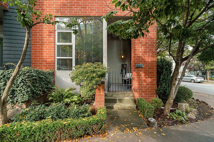 Come see this absolute gem! Rarely available turret-style townhome with your own private entrance at The Omega! Situated in the heart of popular Fairview, this bright, northeast corner residence features soaring 11' ceilings, dramatic floor-to-ceiling windows+ a super spacious open-plan design. The main level includes a curved living room wall, gas fireplace, open kitchen with stainless steel appliances, separate dining area, powder room for guests+ mudroom/pantry. Upstairs offers a king-sized primary with deep closet+ ensuite, a generous second bedroom+ a 3-piece bath with walk-in shower. Amazing, community-focused, friendly neighbourhood+ just steps to Whole Foods, the Seawall, Granville Island, transit+ a quick zip by train to YVR.