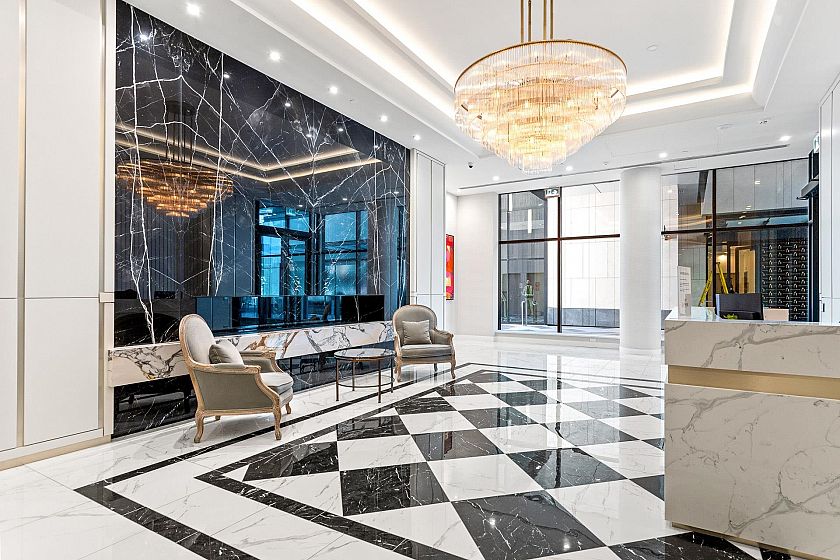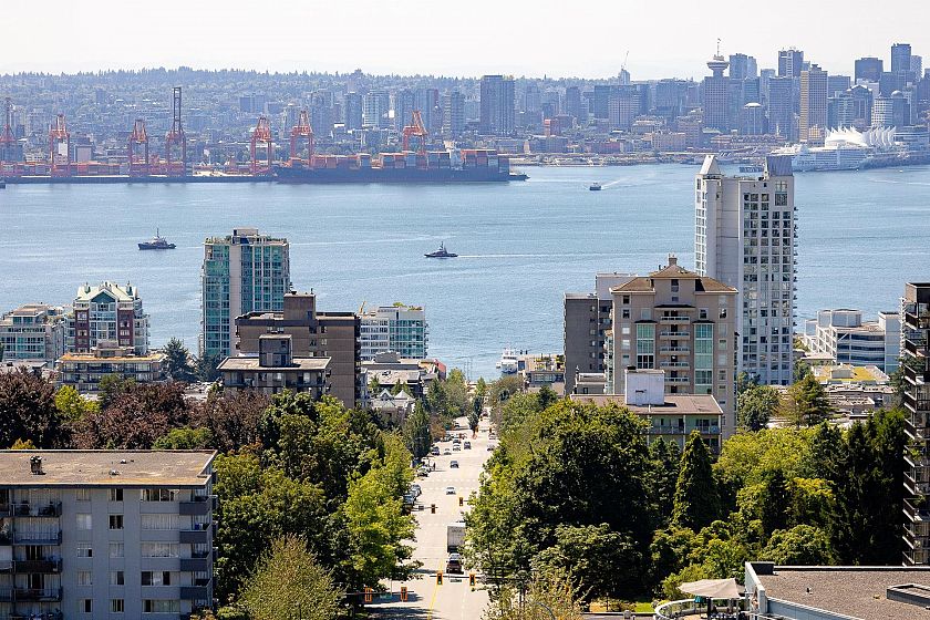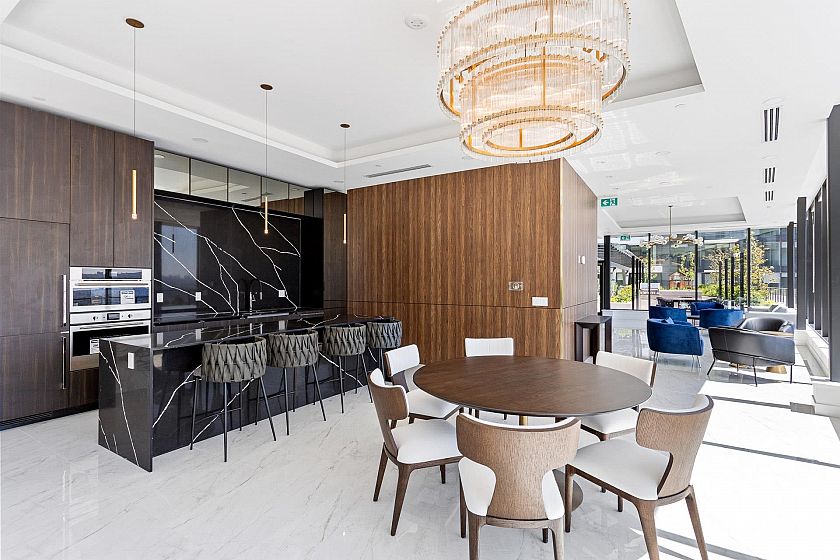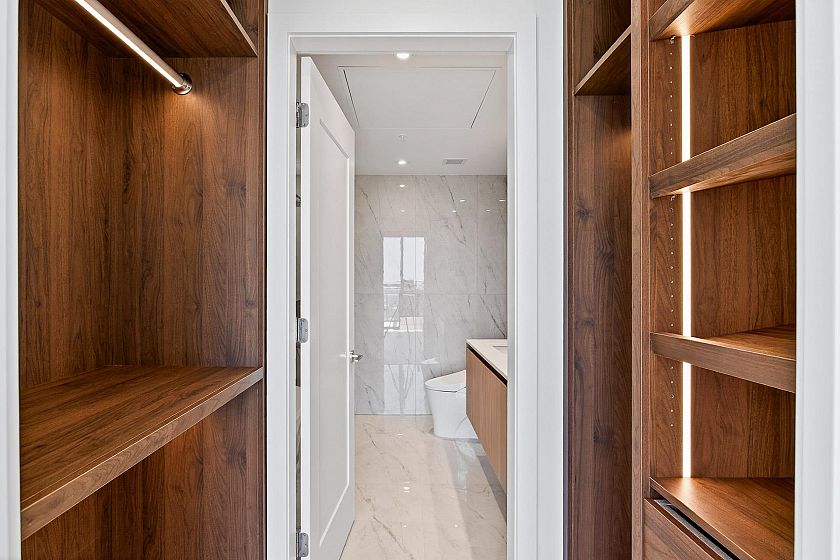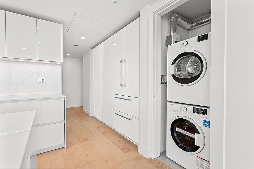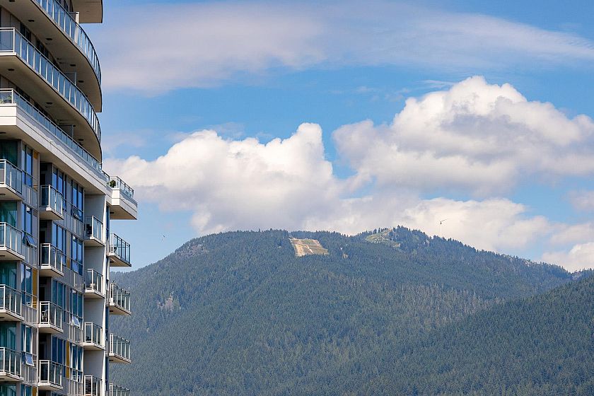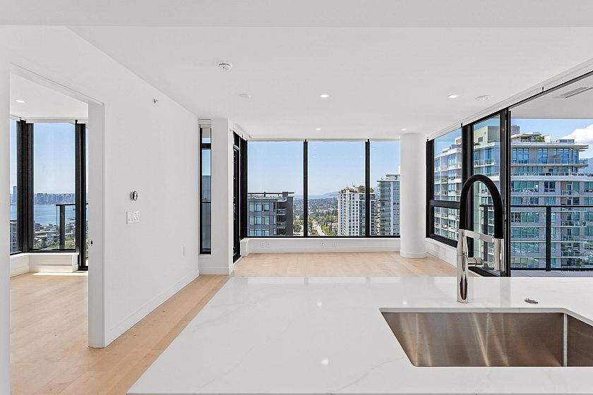 1506 captures North Shore views: city skyline, ocean, Lions Gate Bridge, mountains & serene pool view below. Modern 2-bed, 2-bath corner residence offers over 1,000 sqft of refined living with south, west, and north exposures, showcasing breathtaking scenery from every angle plus two spacious balconies. This unit features floor-to-ceiling windows, a chef-inspired kitchen with premium integrated appliances, a gas cooktop, an oversized waterfall quartz island, LED lit cabinets. Luxury upgrades: motorized blinds, high-end custom closet millwork in the ensuite, a built-in wine fridge, pot lights in the bedrooms, & an elevated palette of premium finishes. Parking & bigger storage. Pics, Floorplan, Pics & video are for 1406. Measurement approximate and to be verified buyer if deemed important