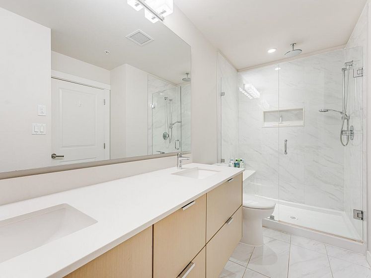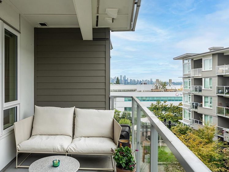 Start 2026 in your new home. Recently refreshed and ready to go.Location & lifestyle in Lower Lonsdale. This bright west facing, 2-bed, 2-bath home features a flexible design and layout, 9-foot ceilings, quality finishings, radiant heat flooring, a great primary suite and ensuite, in suite laundry, stainless steel appliances, gas stove. A balcony with partial D/T and harbour views. The location is central to all that the vibrant Lower Lonsdale waterfront community offers and a great starting point to all the North Shore lifestyle. Near the SeaBus, transit, waterfront park, Spirit trail, Shipyards, The Quay and all the restaurants/breweries, shops & services. West Quay has an exercise centre, bike room, social lounge, elevator, wheelchair access. The property has 1 parking & storage.