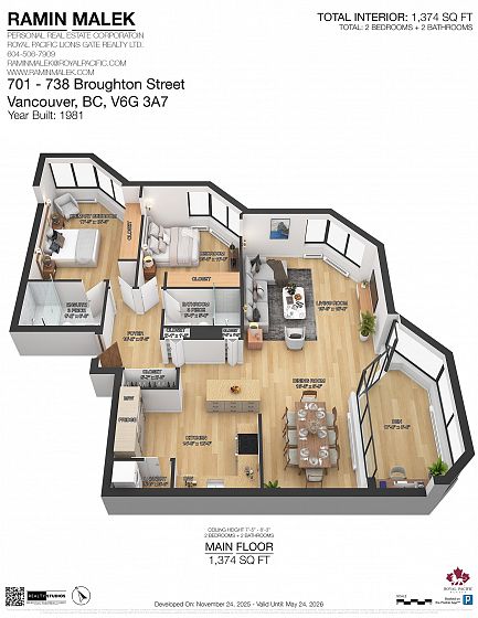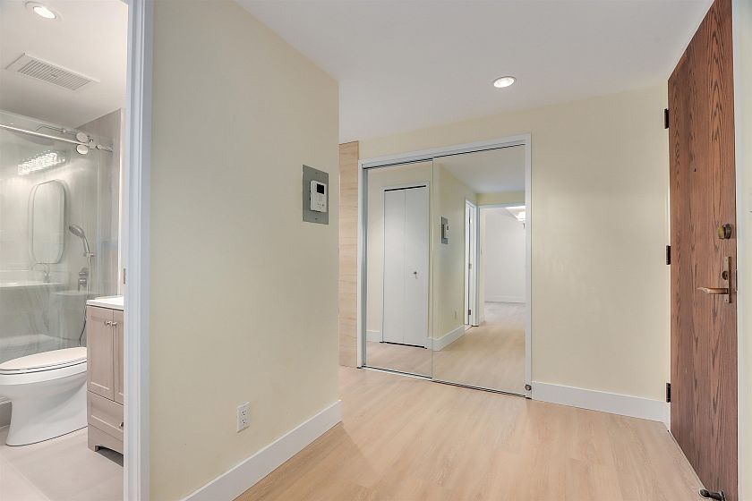 Welcome to The Alberni Place. This fabulous, exquisitely well-maintained building features only 65 units, offering the highest level of comfort, security, and tranquility. Experience the ultimate in turnkey. This meticulously and completely renovated unit offers a rarely available, practical 1,374 square foot floor plan, maximizing both space and comfort. Step inside to discover a world of impeccable taste, featuring brand-new flooring, stunning new bathrooms, and a gourmet kitchen redesigned for modern living.The expansive and spacious living area is warm and vibrant, serving as the perfect setting for relaxation or entertaining. Wake up to serene water views that grace both the bedrooms and the main living space, transforming daily routines into picturesque moments.