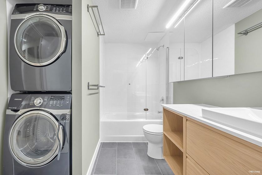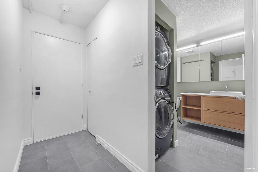 LOCATION, LOCATION! Welcome to this beautifully renovated, move-in-ready 2-bedroom, 1-bath home on a quiet street just steps from vibrant Lower Lonsdale. Enjoy easy access to top restaurants, boutique shops, the Brewery District, and the Quay waterfront. Upgrades include a brand-new bathroom, updated flooring, custom closets, and an in-suite washer/dryer. Normandy House is a well-managed, proactive strata with a major re-piping project completed in 2025. Includes secure garage parking and one storage locker. Two cats and rentals permitted (sorry, no dogs). Located in the Queen Mary and Sutherland school catchments. Experience the LoLo lifestyle - Welcome home!