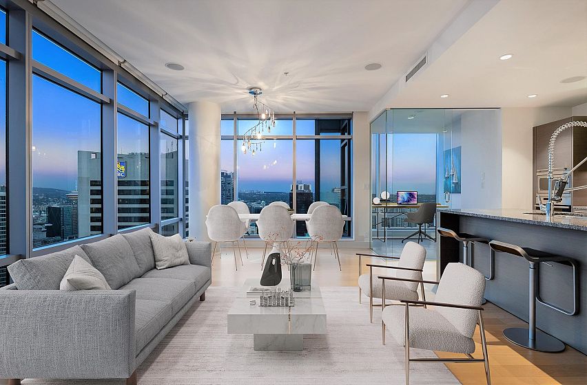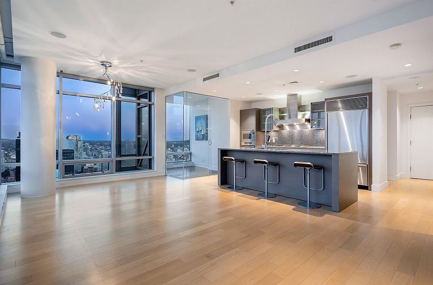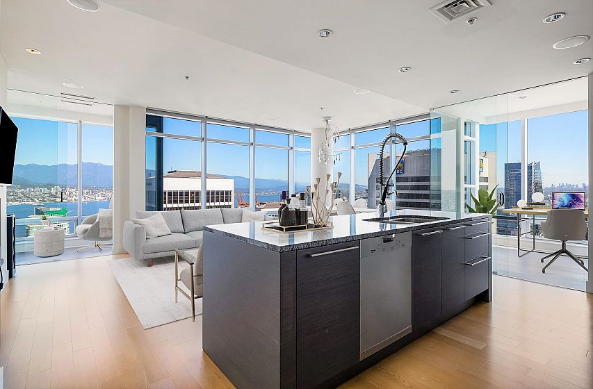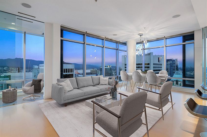The ultimate world-class, 5-star luxury hotel living at prestigious Park Hyatt, on the highest floor at 1111 Alberni! Central A/C. Stunning views of Coal Harbour, ocean, north shore mountains & the vibrant city. 9' ceiling, corner unit, open &functional space, incl. a den/in-suite storage & 2 solariums. A chef's kitchen equipped w/ built-in 6-burner Miele stove, Sub-Zero fridge & Miele d/w, oven. Luxurious features incl auto shades & built-in speakers throughout & blackout shades in both bdrms, floors. Spectacular ocean view from the primary bdrm & city, mountain view from the 2nd bdrm. Meticulously maintained, like new, ready to move in. Amenities: pool, hot tub, gym. 24/7 concierge. 1 oversized parking close to elevator +a private storage room is right behind!