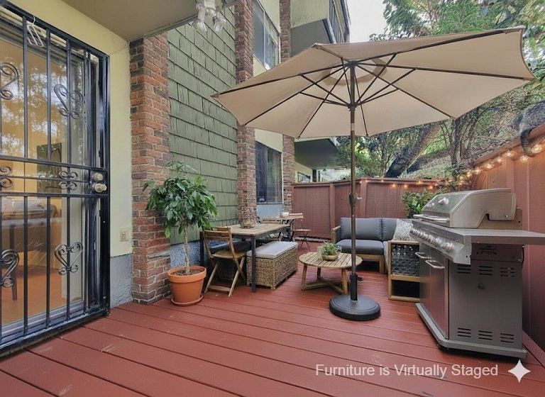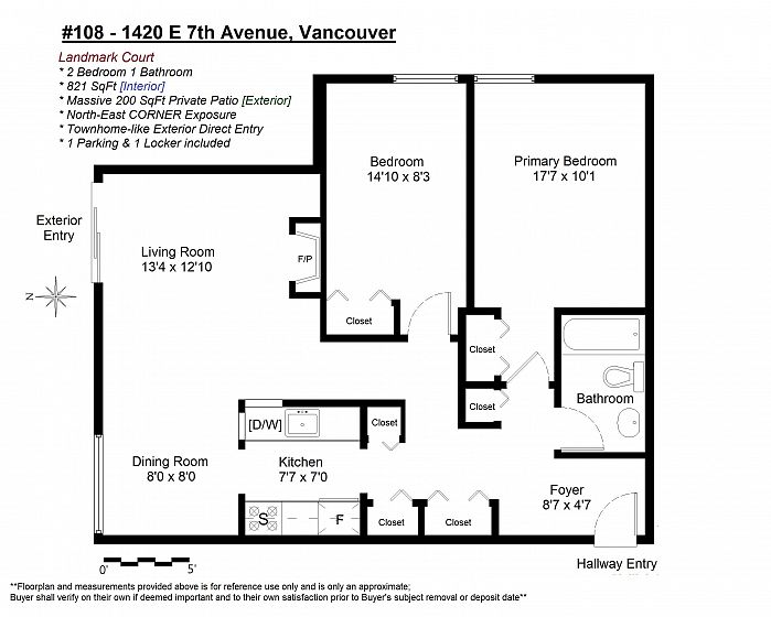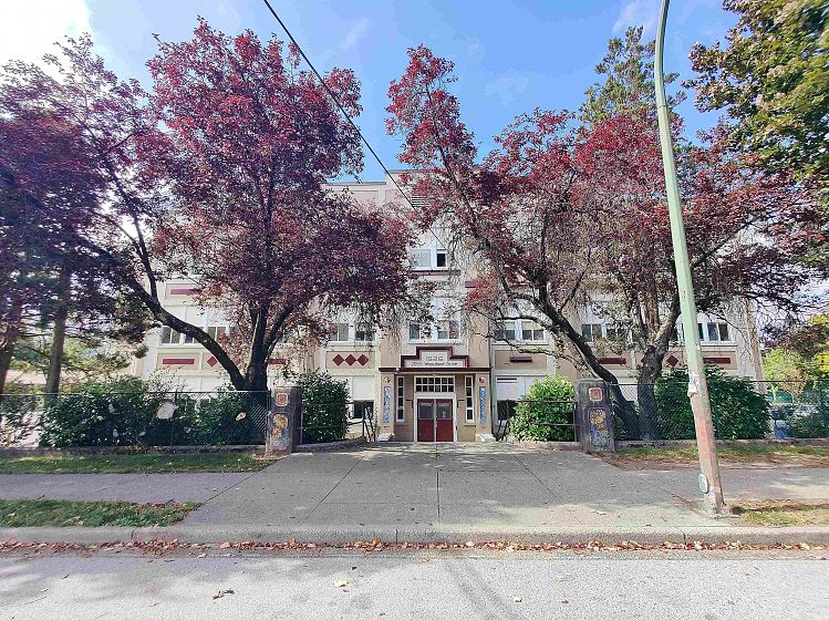 LANDMARK COURT on Quiet tree-lined E 7th Ave right off BOTH bustling COMMERCIAL DRIVE & VCC-Clark SKYTRAIN hubs! Just Like a TOWNHOME! North-East CORNER Garden level unit w/ independent street-side entry. Well-beloved Family Home Features: Spacious 821 SF Floorplan; 2 Bedrm 1 Bath, Expansive 200 SF Private fence & gated Patio to entertain, s/s kitchen appliance set, 1 Parking & Locker. Strata fee includes: hot-water heat b/b, h/w, gas fireplace. [Pictures have been virtually staged]. Commercial Drive convenience : Steps to Grandview Elementary, Commercial-Broadway SKYTRAIN, B-line transit to UBC-Burnaby, bike lane, Trout Lake & Britannia community, Safeway, NEW St. Paul's Hospital; VanTech Secondary catchmt. *OPEN HOUSE Sunday March 22, 2 to 4pm*