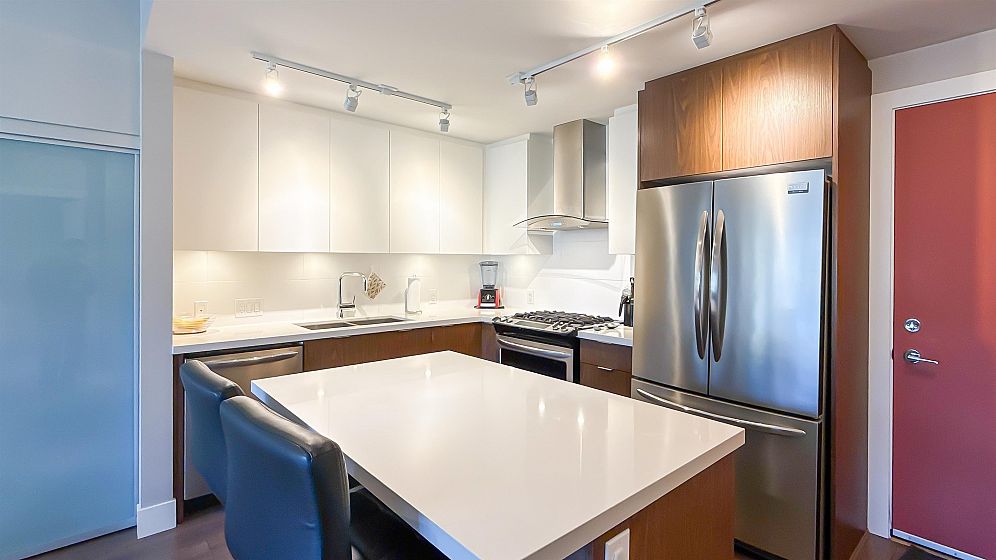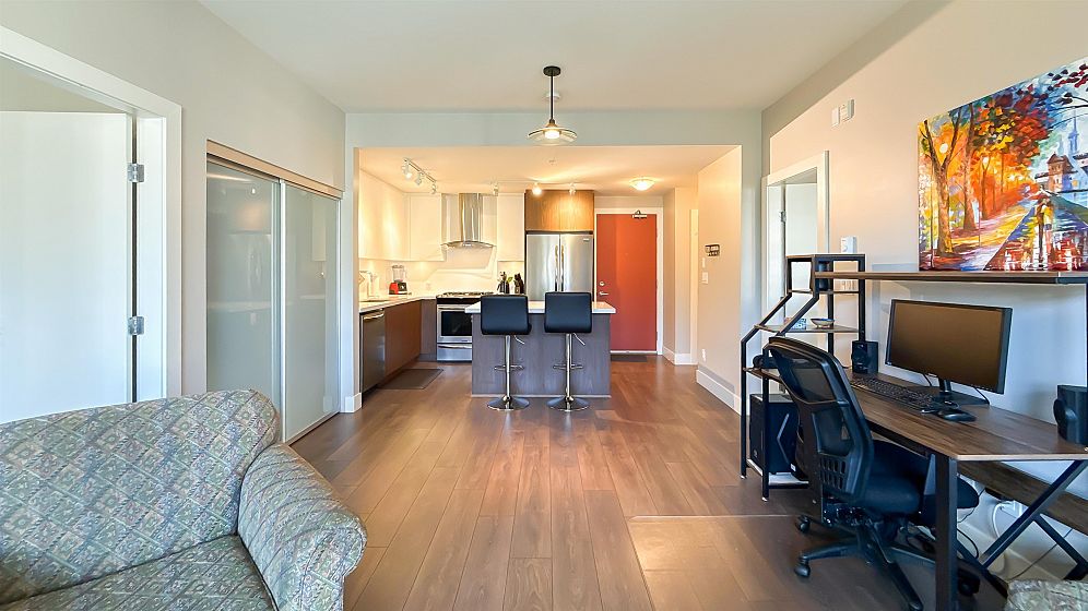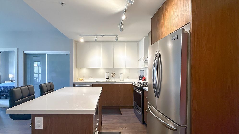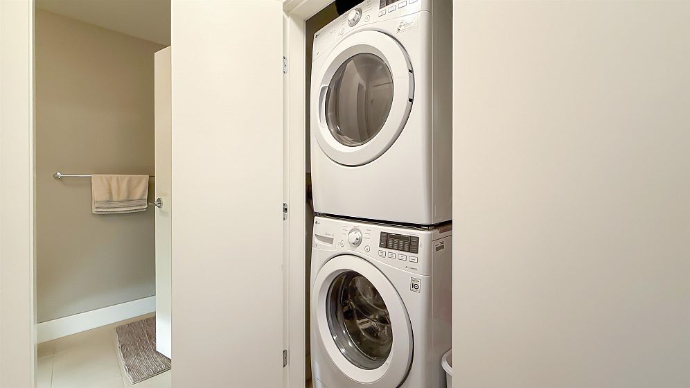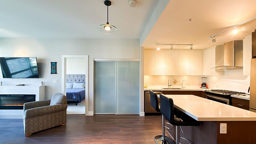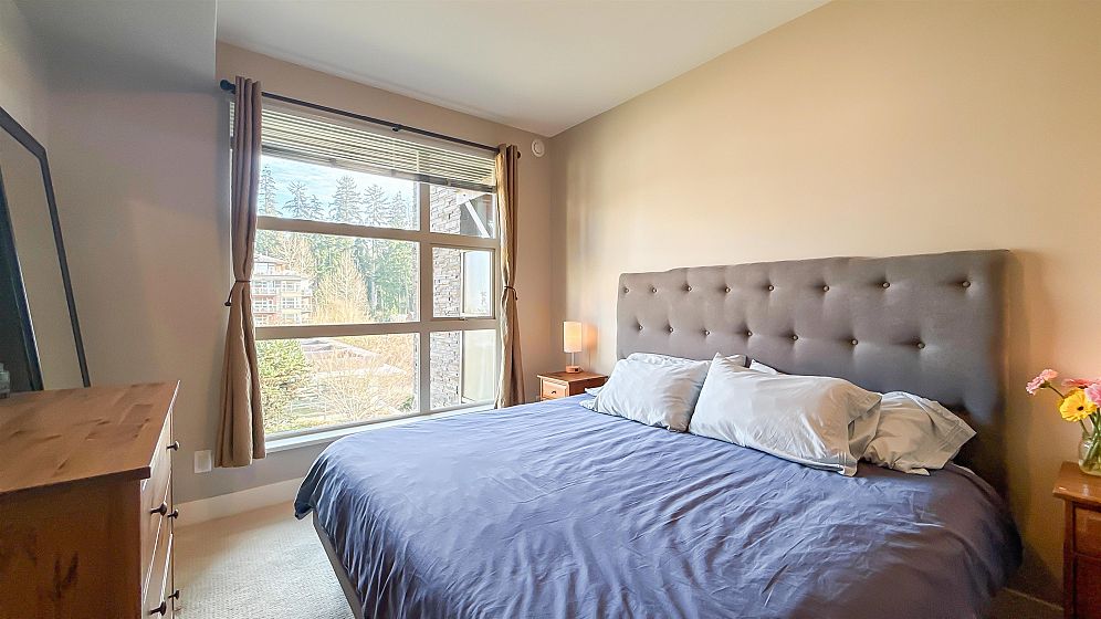 Welcome to this well-designed east facing 2 bed home at Destiny 2 in Raven Woods, North Van. Built by Aquilini in 2017, this spacious home feels new & features kichen w/ quartz countertops, s/s appliances, island & spacious pantry. Living room extends to spacious covered balcony of 144sf overlooking serene lagoon. 9ft ceilings. Primary bedrm easily accomodates king bed & dresser; large walk-in-closet connects to ensuite w/ double sinks & separate tub/shower. Full sized W/D. Two parking stalls are tandem. Full size storage locker. Amenities incl. bright party rm, extensive gym & bike/kayak storage. Quiet residential location a short drive to amenities in Deep Cove or Parkgate Village. Cates Park & 2 golf courses nearby. Seycove Secondary & elementary schools nearby.