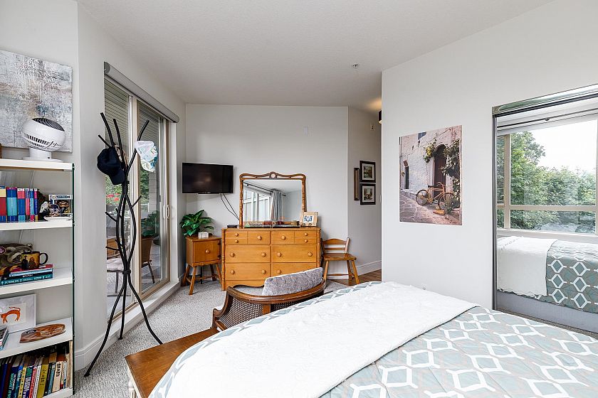 Exceptional RARELY AVAIL END UNIT showcasing breathtaking water/forest views! Bright and private. Open floor plan features 2 bedrooms on opposite sides for optimal privacy, plus a den perfectly situated to capture the scenery, ideal for a home office. The modern kitchen with a centre island makes entertaining easy, keeping connected with family/guests. 2 spa-inspired bathrooms include a large walk-in shower in second and a luxurious ensuite in the primary suite. Quality upgrades throughout, inc. blackout Somfy power blinds in bedrooms, newer high end appliances, newer carpet in bedrooms/den, newer laminate floor, custom closet organizers, and much more. HUGE 320 sq. ft. covered balcony ideal for outdoor living. EV park available in visitor parking. A true GEM! Book your private showing!