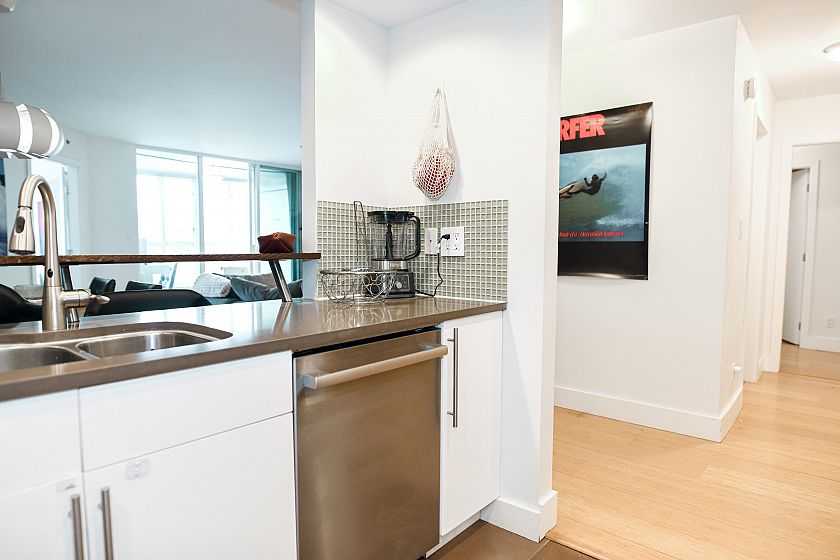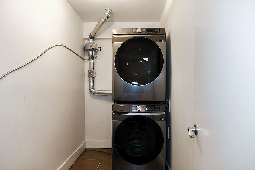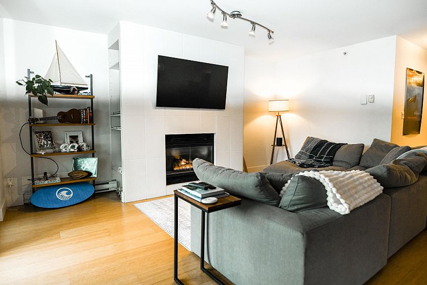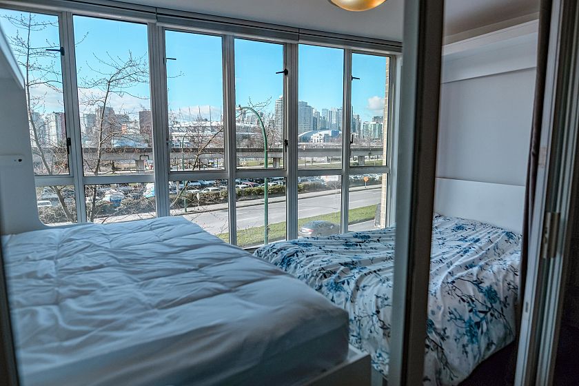Presenting a tastefully updated and exceptionally spacious 2 bed, 2 bath plus den home in the solid Bosa-built concrete City Gate development. Offering over 1,300 sq ft of comfortable, highly liveable space with floor-to-ceiling windows, high-quality stainless steel appliances, and an open layout anchored by a gas fireplace. The versatile den features a built-in desk and two Murphy beds, ideal for guests or a dedicated home office. The home can comfortably accommodate 8 people with the guest beds. The generous ensuite includes a double vanity, soaker tub, and separate shower. Enjoy excellent amenities including an indoor pool, gym, hot tub, games room, and landscaped courtyard. Steps to SkyTrain, Seawall, Olympic Village, downtown, and Mount Pleasant’s vibrant dining and social scene.