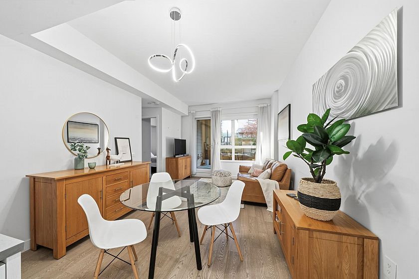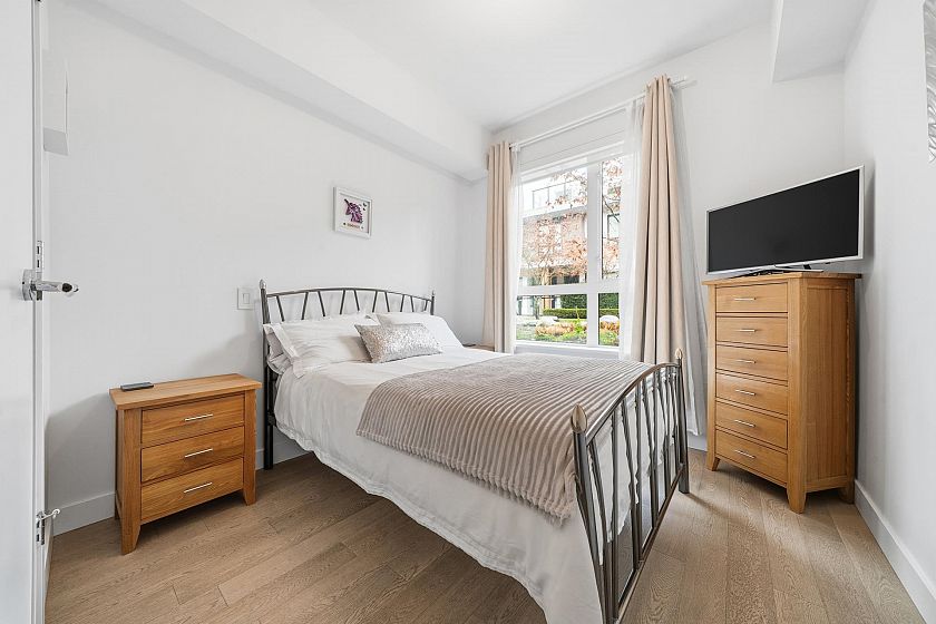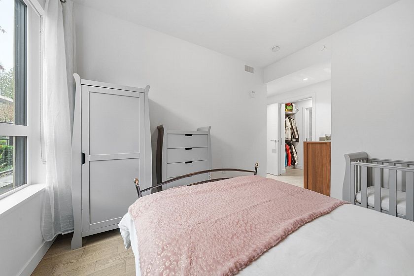 Introducing The Connaught by Grosvenor, an exclusive concrete residence located in the heart of desirable Edgemont Village. Stylish 2 bed + den home offers 996 sqft of beautifully designed living space plus a generous 205 sqft private patio-ideal for entertaining/relaxing outdoors. Sleek contemporary kitchen showcases Bosch appliances, Italian cabinetry, marble accents, gas cooktop, while the open plan living area enjoys mountain views & seamless access to the partially covered patio with gas & water hookups. Comfort is elevated with air con & radiant in-floor heating in the primary ensuite. thoughtfully situated within the building for peace and privacy, away from street noise and restaurant exposure. 2 side-by-side parking, locker, concierge, fitness centre. Open house Sat 31st 2.30-4pm