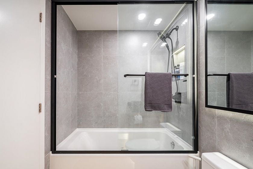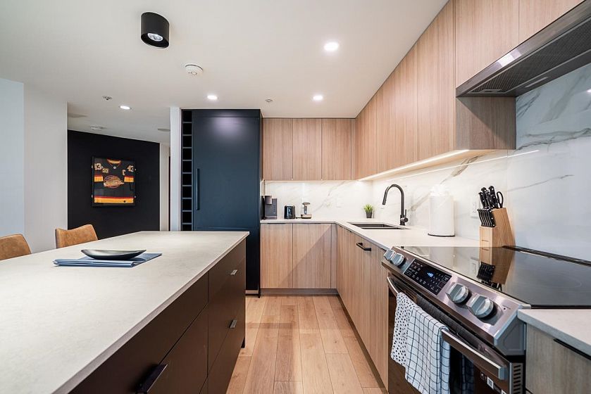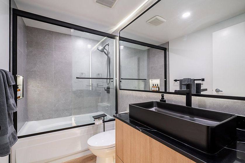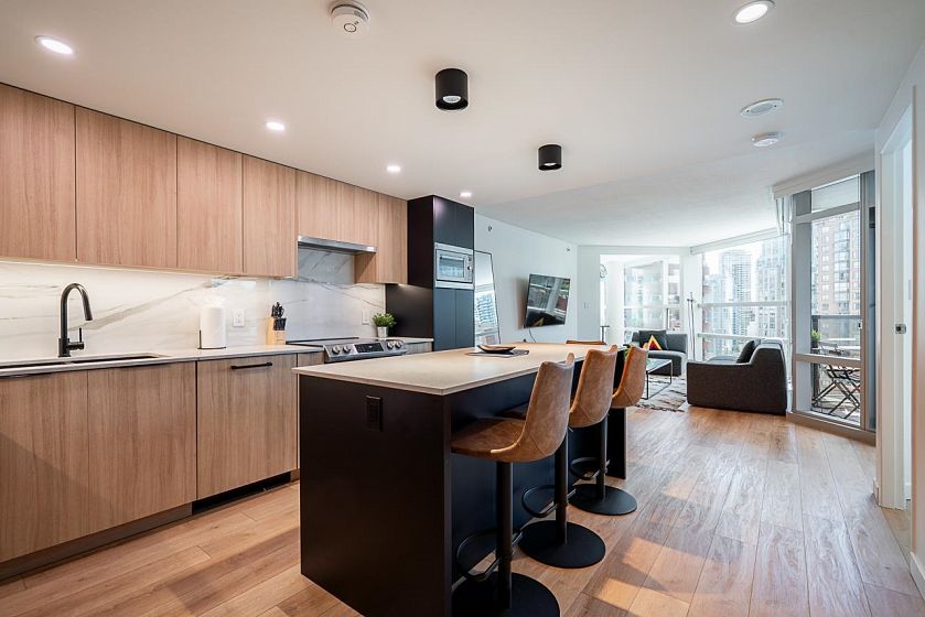 The Residences at Wall Center – A breathtaking Custom Designed unit. This 2 Bedroom + DEN is one of the largest floor plans in the building! Featuring Air Conditioning, new floors, new appliances, designer cabinets + lighting, Spa-inspired bathrooms, large balcony, in-suite laundry, and so much more. Includes 1 secure parking + 1 storage locker. Immerse yourself in the vibrant heart of the city, centrally located near all amenities, transit, Robson Street shops, Granville entertainment, world class restaurants, Art Gallery, English Bay, Stanley Park, the seawall, parks and beaches. **STRATA DOES ALLOW Air BNB**