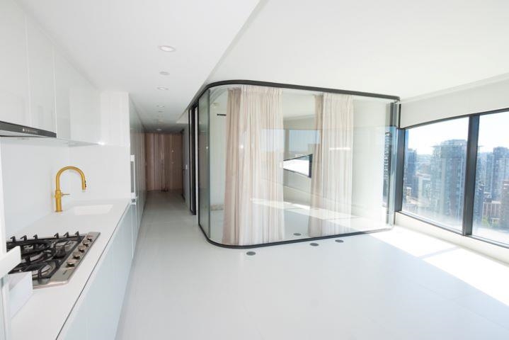 The Butterfly by Bing Thom-A Sculptural Icon in DT Vancouver. This high-level 1065sqft 2 bed 2 bath residence offers stunning panoramic views of English Bay, mountain & city skyline. Thoughtfully designed with refined interiors featuring porcelain flooring, motorized drapes & an Italian-crafted kitchen equipped with Miele appliances, including a gas cooktop, steam oven, & microwave. Custom cabinetry and premium finishes throughout complete the luxurious living experience. Residents enjoy world-class amenities:a 50m indoor skylit pool with 2 swim lanes, hot tub, fully equipped fitness centre, social lounge w/balcony, and 24-hour concierge service.Unbeatable location, steps to luxury boutiques, renowned restaurants, cafes, Stanley Park, theatres, transit & SkyTrain.Motivated seller-don't mis