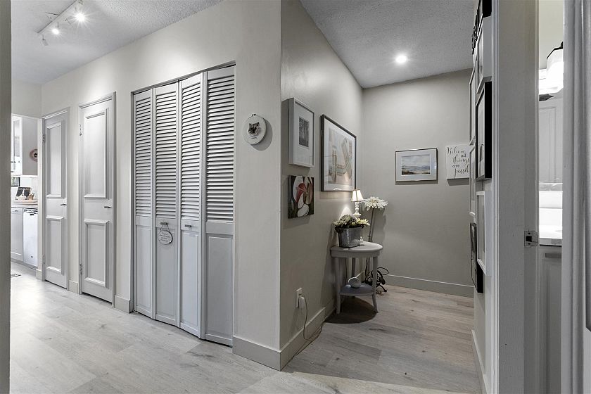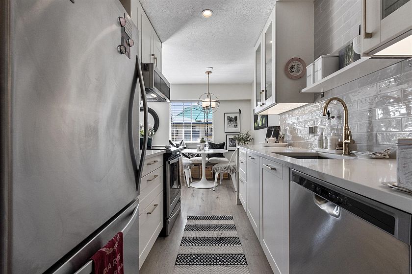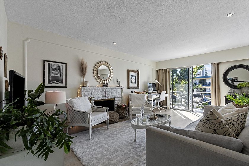 Sunny and spacious! Top floor south facing corner, fully renovated 2-bedroom apartment in ultra-accessible area of Lonsdale with an 85 walk score. Besides its super convenient location, features include the 76 sq ft south facing balcony, WOOD BURNING fireplace, new kitchen with illuminated cabinetry, bianca quartz countertops, stainless appliances including built-in dishwasher, new flooring throughout, 4" wood baseboards and decorative moldings. The Georgian is a free-hold, 14-unit mid-century walk-up that is impeccably cared for, allows for pets (2 cats), gas barbecue, and rentals. Parking and storage locker included. Low strata fees include heat and hot water. Viewing by appointment.