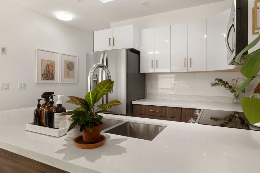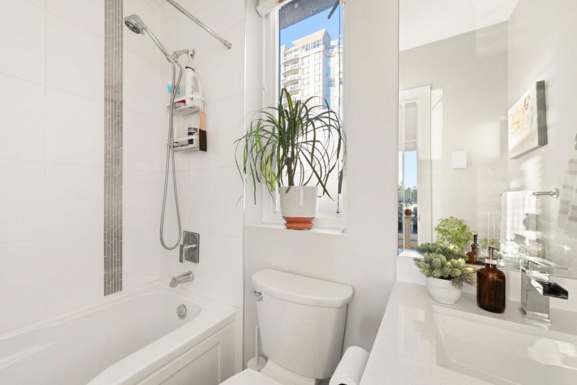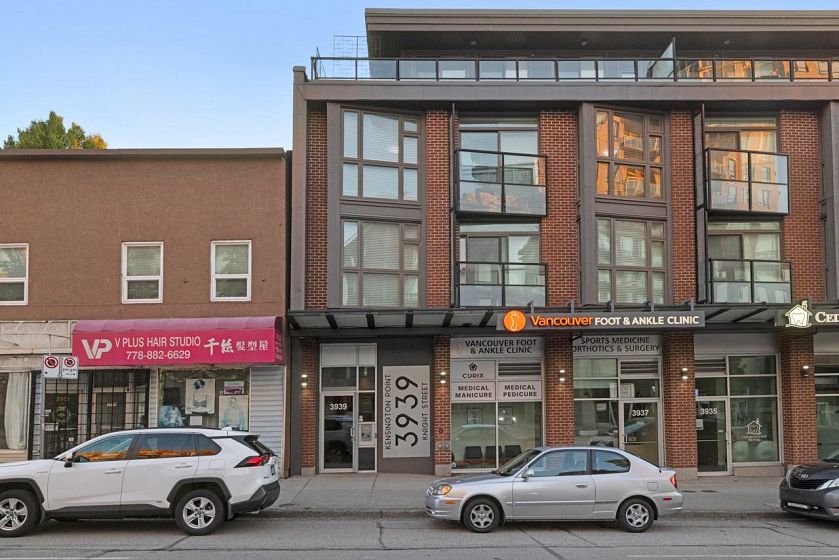 Make your penthouse dreams a reality at Kensington Point. A gorgeous 2 bed, 2 bath corner home sits on the top floor of a boutique building located in Cedar Cottage. Find yourself on the quiet side w/the most covetable, almost 500sf, garden-ready patio to enjoy the sun set over the city & panoramic views of the mountains. The bright interior offers open concept living w/a spacious layout. Light fills the space through floor-to-ceiling, west-facing windows & a perfectly placed skylight in the kitchen. Built in 2017, PH2 is well maintained featuring engineered hardwood floors, custom closets, quartz countertops, SS appliances & Miele W/D combo. A blend of comfort, style & everyday practicality. Comes with 1 parking, 1 storage room + bike locker. Steps to great shops & restaurants.