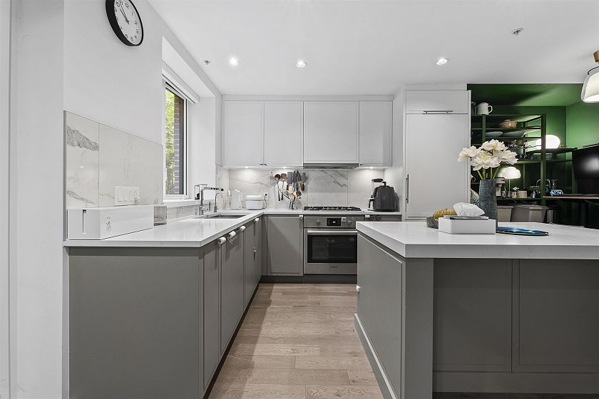Perron is a boutique collection of garden homes built by renowned developer Listraor, celebrated for their commitment to quality and thoughtful design. Ideally situated just across from the picturesque Winona Park, this residence offers the perfect blend of urban sophistication and serene park-side living. This beautifully designed 2-bedroom, 2-bathroom home showcases modern interiors focused on livability and style. Enjoy the upscale feel of thick Caesarstone countertops, sleek open shelving, and full-sized Bosch appliances in a gourmet kitchen that’s as functional as it is elegant. J.W. Sexsmith Elementary is just steps away. Churchill secondary is close by.