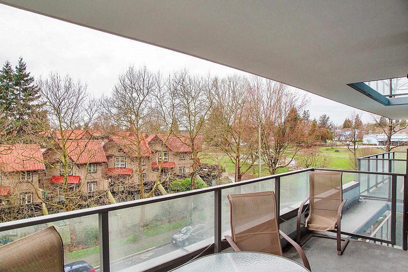 Experience elevated urban living in this beautifully appointed 2-bed, 2-bath home in sought-after South Cambie Village. The well-designed layout features high ceilings and wide-plank laminate flooring throughout. The gourmet kitchen offers a gas cooktop, integrated refrigerator, and dishwasher. Enjoy year-round comfort with efficient heating and cooling. The spacious primary bedroom includes a walk-through closet with built-in organizers and a sleek ensuite. Relax on the generous balcony overlooking Ash Park or enjoy the rooftop terrace with BBQ, play area, and garden. Amenities include a fitness centre, party room, guest suite, and concierge. Ideally located steps to SkyTrain, shopping, dining, theatres, and minutes to YVR.