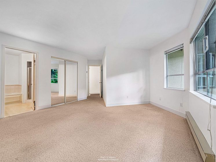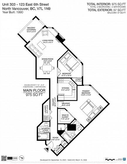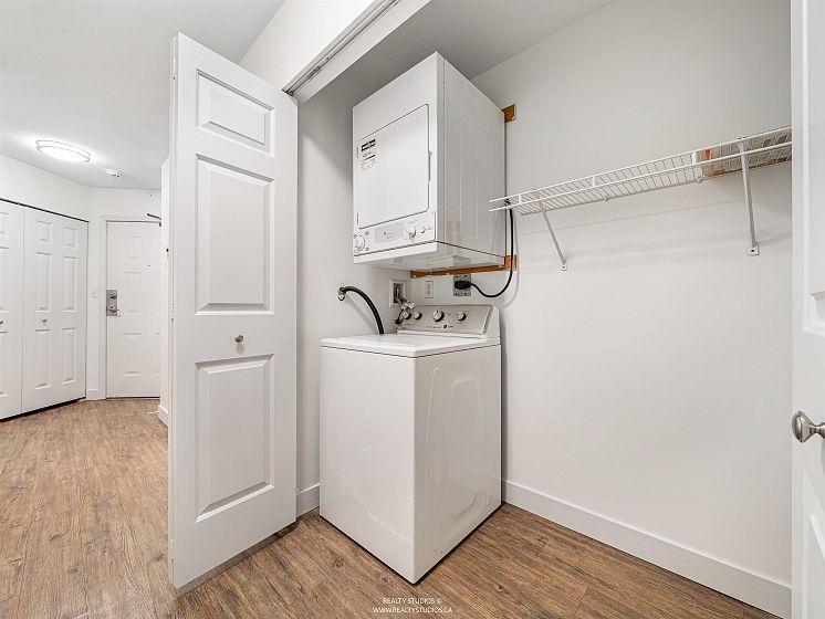 Top-floor at Harbourgate in the heart of Lower Lonsdale. This 2 bed, 2 bath home offers 975 sq ft of comfortable space with a practical layout, in-suite laundry, and a covered northeast balcony that welcomes soft morning light. A gas fireplace adds warmth and ambience to the living area. The kitchen and bathrooms are original and well-maintained, offering a great opportunity to update at your own pace and build long-term value. The primary bedroom features a walk-in closet and full ensuite, with a second bedroom ideal for guests or a home office. Includes 1 parking stall and 1 locker. Pets allowed. Steps to the Shipyards, SeaBus, cafés, and shops.