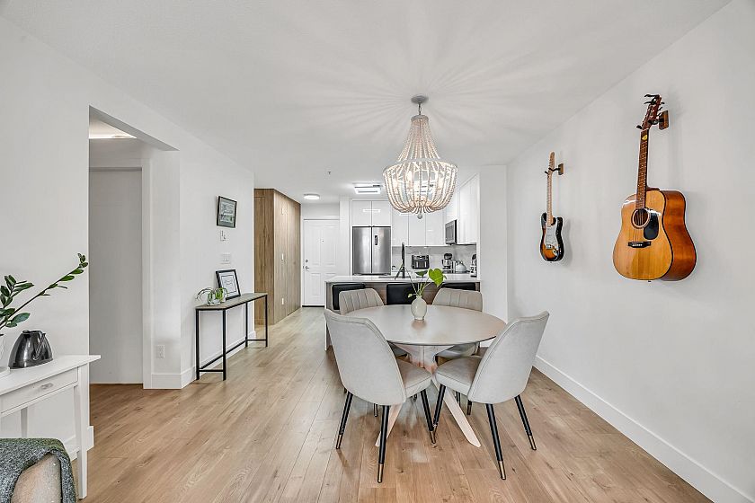 Welcome to this beautifully renovated 2 bed, 2 bath home with stunning Fraser River views. Every detail has been redone from top to bottom kitchen, bathrooms, flooring, lighting, appliances, and paint creating a bright, modern space that feels brand new. The open-concept layout features a spacious living and dining area that flows seamlessly to a covered balcony overlooking the river. The updated kitchen offers all new cabinetry and appliances, while the large primary bedroom includes a stylish ensuite. Enjoy peaceful riverside living just steps to River District’s shops, restaurants, cafés, parks, and amazing walking trails. A quiet, move-in-ready home in one of Vancouver’s best waterfront communities perfect for those seeking modern living in a vibrant, connected neighborhood.
