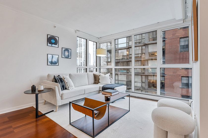 Yaletown 2 bed/2 bath with excellent water views from the living area. Perfect floorplan with no wasted space, including a primary suite that fits a king! Hot water heat, floor-to-ceiling windows, and a generous living/dining area. Unbeatable location directly across the street from Elsie Roy Elementary School/Seawall and a 2-minute walk to the skytrain. Small 86-unit strata, with impeccably maintained common areas. New building plumbing & full amenities including an indoor pool, hot tub, gym, & meeting room, & on-site caretaker