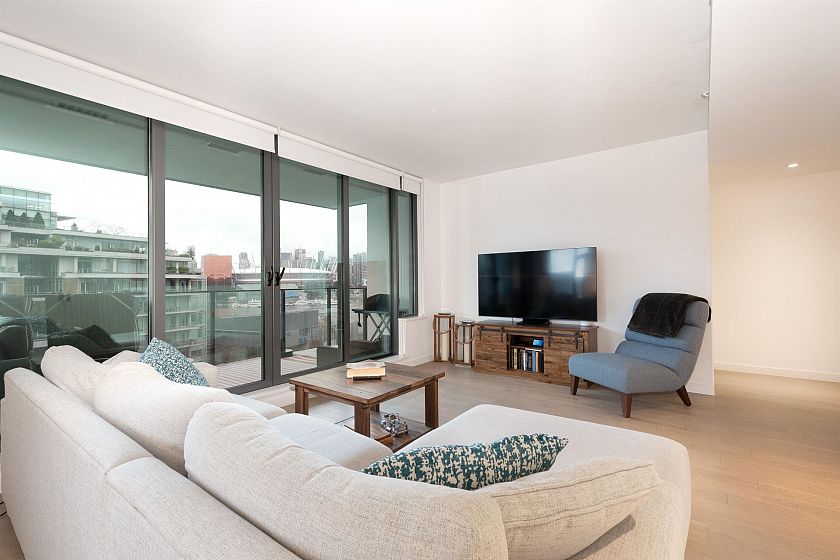 Welcome to NAVIO at the Creek, a bright and well-kept 2 bedroom, 2 bathroom corner home by Concert Properties, offering a highly functional west-facing layout with beautiful sunset, water, mountain, and unobstructed views. The sought-after split bedroom floor plan provides excellent separation and everyday livability. Features include Bosch Elite appliances with ceramic cooktop, wall oven, and convection/microwave, custom cabinetry with generous storage and pantry, hardwood flooring, NuHeat in-floor heating, and A/C. Enjoy amenities including concierge service, fitness centre, and rooftop garden. Located just steps to Olympic Village, Seawall, shops, restaurants, and transit. Includes two side-by-side parking stalls. Rental and pet friendly! Book your private showing.