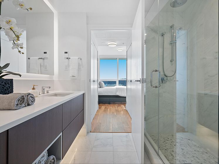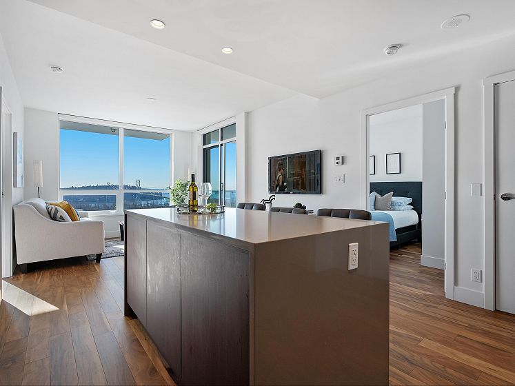 Imagine waking up each morning to SPECTACULAR UNOBSTRUCTED, PANORAMIC views of the sparkling OCEAN, vibrant city SKYLINE, and majestic MOUNTAINS—this is your everyday reality in the heart of Lions Gate Village. Centrally located on the North Shore and Perched high on the 20th floor of Park West, this 2-bed, 2-bath NEWLY built gem offers 825 SF of luxurious living. From soaring ceilings and rich H/W flrs to sleek quartz cntertops, premium German Gaggenau appliances, and elegant Grohe fixtures, every detail radiates sophistication. Step outside to enjoy resort-style amenities: a lap pool, hot tub, fitness facility, piano lounge, theatre, yoga/dance studio, sports viewing area and much more. ONLY 5 MIN TO PARK ROYAL. TWO PKG stalls add ultimate convenience. OPEN SUN FEB 08 | 2-4 PM.
