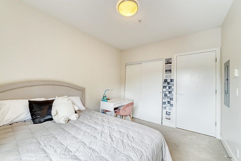 Welcome to IVY at Marine. This rarely available two-bedroom, two-bathroom corner unit features high ceilings and is flooded with natural light, creating a bright and inviting living space. The practical floor plan offers an open-concept layout with bedrooms thoughtfully positioned on opposite sides for added privacy. The kitchen boasts ample cabinetry, stainless steel appliances, and granite countertops. The spacious primary bedroom is well-sized and includes a private ensuite bathroom. Ideally located, the building provides easy access to shopping centres, restaurants, parks, and public transit, perfect for comfortable and convenient living. Quick possession is available.
