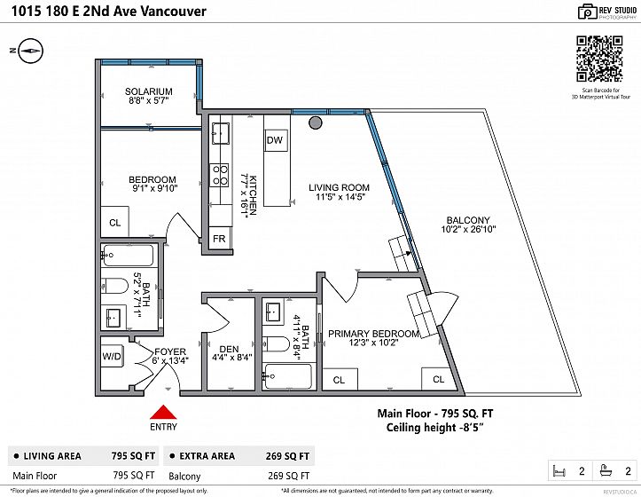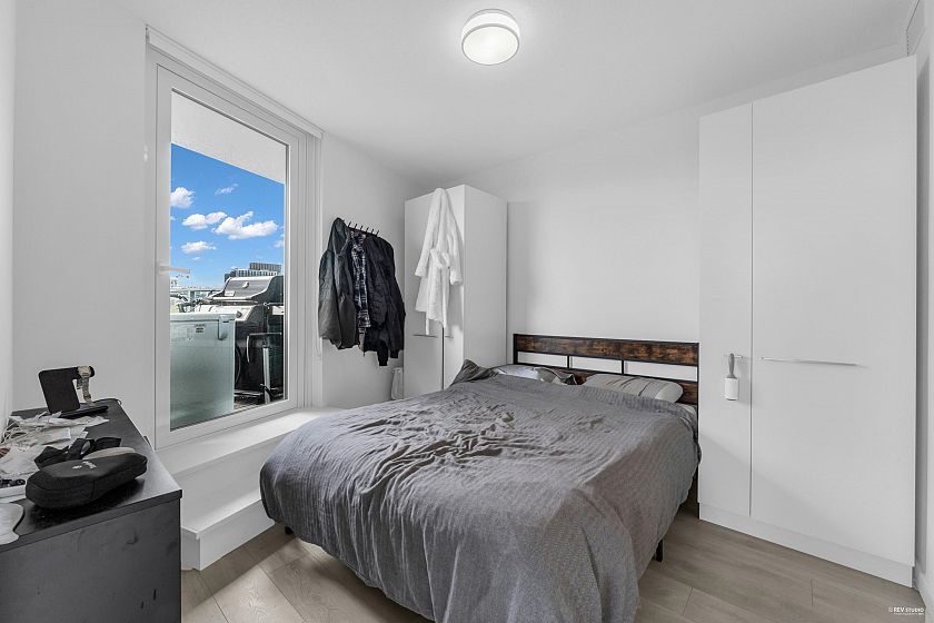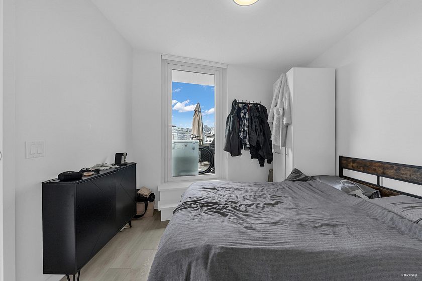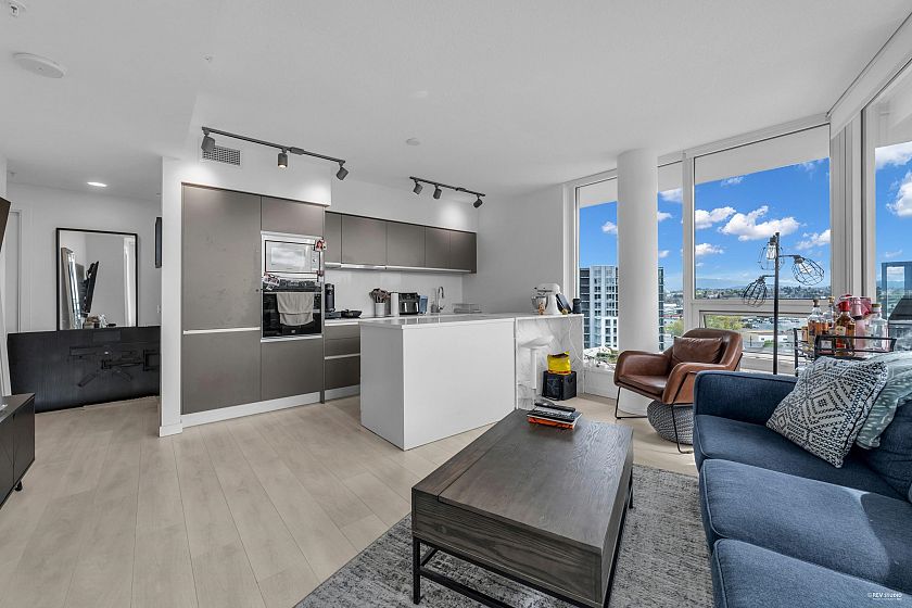 PRICED UNDER ASSESSMENT! Olympic Village area. INCLUDES 2 PARKING and a spacious 269sf patio-ideal for relaxing or entertaining. Best-priced 2 bed + den + sunlit solarium that extends from the bedroom. Not all homes have a solarium perfect as an office or pet space. Bright, efficient layout with modern kitchen, high-end appliances and air conditioning. Only 4 years old with 2-5-10 warranty remaining. Amenities include a gym, rooftop BBQ and garden plots, and social lounge for large gatherings. Prime location: walk to SkyTrain, downtown, future Broadway Line, and St. Paul's. Walk Score 99, Transit 89, Bike 96. Great for end user or investment. Plenty of visitors parking for your friends and family, and bike storage.