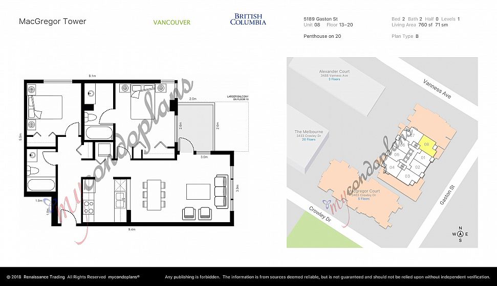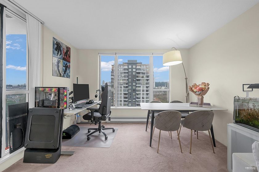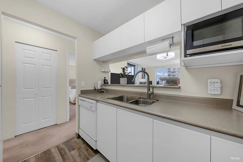 Stunning unobstructed city and mountain views from this bright CORNER 2-bedroom, 2-bath home in the well-maintained MacGregor building. Offering a spacious and functional layout of approx. 759 sq ft, this home was freshly updated with new lighting in 2023 and is exceptionally clean and well kept—move-in ready. The northeast exposure fills the bedrooms and generous patio with beautiful morning light and year-round views. Prime location just steps to Joyce SkyTrain, restaurants, St. Mary Elementary and Gaston Park. Downtown in 20 minutes, Burnaby in 5, and a short drive to Metrotown, Superstore and Grandview Highway. Features include in-suite laundry, 1 parking stall and 1 storage locker. Pet-friendly building allowing up to 2 pets (under 25 lbs) and rentals permitted (max 40).