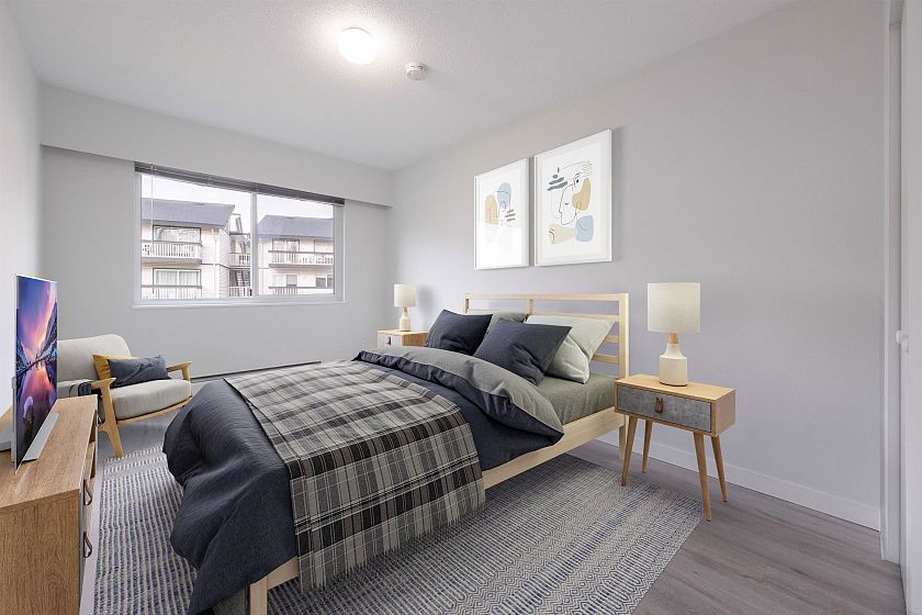 Step into over 1,040 sq.ft. of updated comfort in this 2-bedroom home designed for space and light. The open-concept layout showcases a renovated kitchen with stylish two-tone cabinetry, stainless steel appliances, and wide-plank flooring throughout. Oversized windows and a sun-soaked balcony create a warm, inviting atmosphere, while the flexible floor plan offers plenty of room to work, relax, or entertain. With generous in-suite storage and a location just steps to trails, parks, Capilano University, and quick Highway 1 access, this home is a smart choice for first-time buyers or anyone needing more space at an EXCEPTIONAL VALUE.