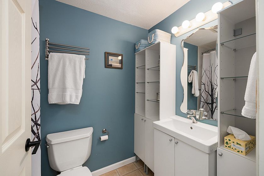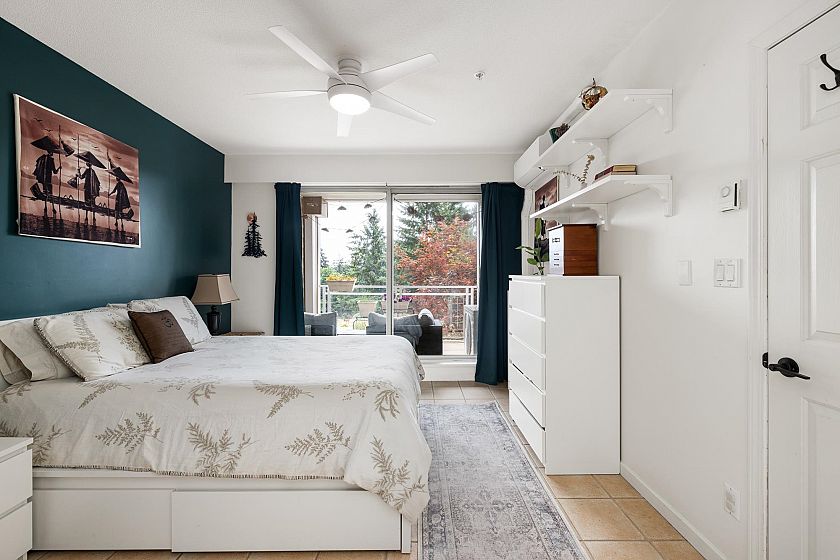 Exciting opportunity at Deerfield by the Sea! This stylishly updated 2 bdrm + glass-walled den, 2 bath home offers 961 sq/ft of bright, air-conditioned living. Enjoy renovated, open kitchen with bar seating, updated baths, gas fireplace, and large windows framing a peaceful, south-facing treed view. Bedrooms are smartly separated for privacy, and the den is perfect as an office, nursery, or guest space. One floor above ground—safe and elevator-free access! Covered balcony ideal for year-round BBQs. Walk to the beach and rec/gym facilities. In-suite laundry, 2 parking, storage locker. Rentals & pets welcome. Leasehold prepaid to 2095. Open SUN Jan 18th 11:00am-1:00pm.