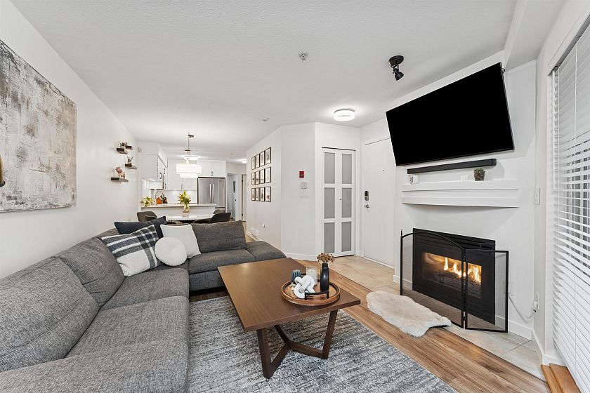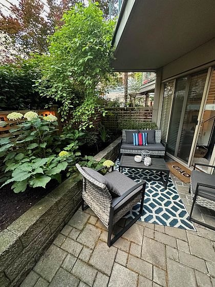 Discover this charming 2 Bed/1 Bath townhouse style condo with its own private entrance tucked away off a serene, secure courtyard. Step inside to discover a welcoming interior, thoughtfully refreshed w/ fresh paint and rich HW floors. The beautifully upgraded kitchen with SS appliance package and modern finishes is a standout feature w/ ample counter space; perfect for everyday living and entertaining. The layout is ideal w/ two spacious bedrooms and completing the package - a unique and private patio, a lovely extension of your living space. The Calypso is centrally located in the heart of Lower Lonsdale, surrounded by restaurants, shops and transit and only steps to the waterfront Shipyards District. This fully rain screened building has a new roof, re-piped + guest suite.