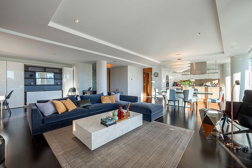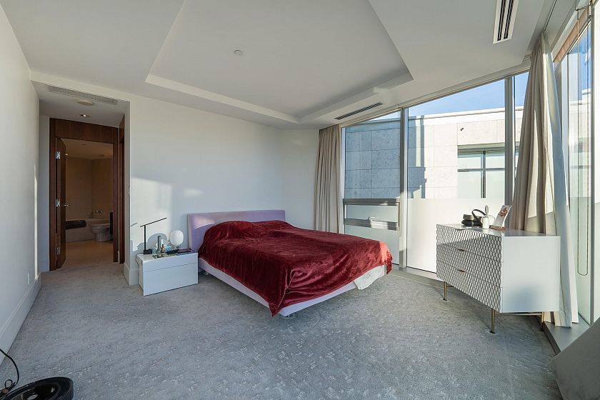 ERICKSON — Vancouver’s most sought-after waterfront property. This exceptional south-facing 2-bed, 3-bath residence offers over 2,200 sq ft of refined living with breathtaking water and city views. Private elevator opens directly into the suite for privacy and exclusivity. Gourmet kitchen with top-tier appliances including Sub-Zero and Miele elevate daily living. Bedrooms are on opposite ends for maximum privacy, and spa-inspired bathrooms feature limestone finishes and a steam shower. Enjoy seamless indoor-outdoor living with a spacious balcony with eclipse doors. World-class amenities include concierge, gym, pool, jacuzzi, theatre, and a private 2-car garage with storage — luxury waterfront living at its finest.