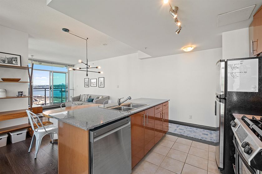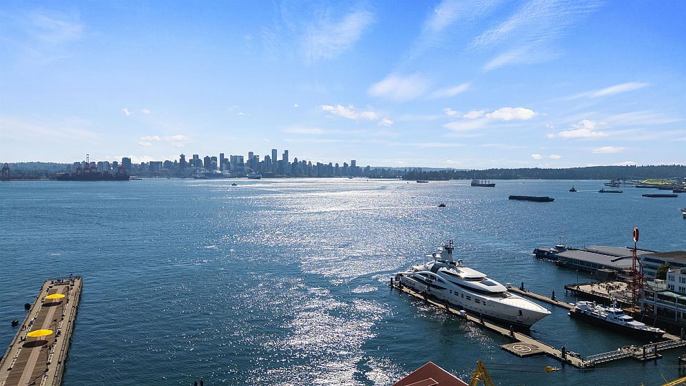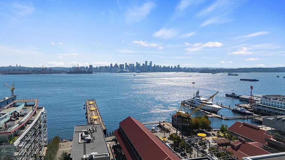 Corner-view living in the heart of Lower Lonsdale! This two-bedroom and two-bathroom home offers sweeping North Shore mountain and ocean views from the 20th floor. The open-concept kitchen flows into spacious dining and living areas, while the primary bedroom is privately set apart. Enjoy a gas range, AIR CONDITIONING, and a generous balcony perfect for morning coffee or sunset views. BONUS - AC/heat/gas incl in maint fee! Hotel-style amenities are available, including an indoor swimming pool, exercise centre, hot tub, and more. Steps to the Seabus, Lonsdale Quay, the Shipyards, boutique shops, cafés, and top-rated restaurants. Includes one parking stall, one storage locker, and pet and rental-friendly living.