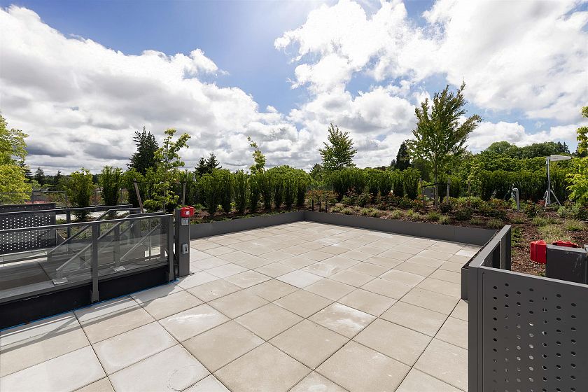 Refined penthouse living in Kitsilano’s newest boutique concrete offering, Raphael. Spanning 1,381 SF, this air-conditioned residence blends timeless design with elevated customizations: rich herringbone flooring throughout, marble countertops, an upgraded backsplash, motorized blinds, and a fully integrated Sub-Zero and Wolf kitchen including wine fridge, gas cooktop, and statement hood fan. The generous layout includes two bedrooms, two bathrooms, and flexible spaces for a den and dedicated office. The primary suite features a spa-calibre ensuite with walk-in shower and freestanding tub. Enjoy seamless indoor-outdoor living with a 168 SF balcony and a spectacular 570 SF private rooftop terrace with mountain views. Includes two parking and one locker. Pets and rentals welcome.