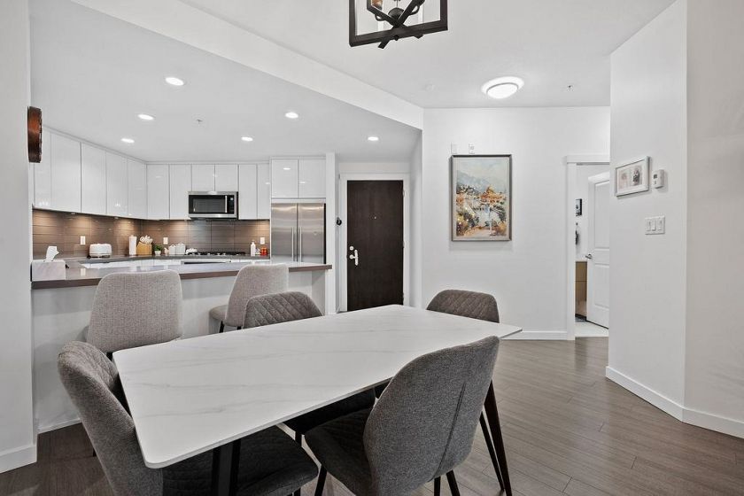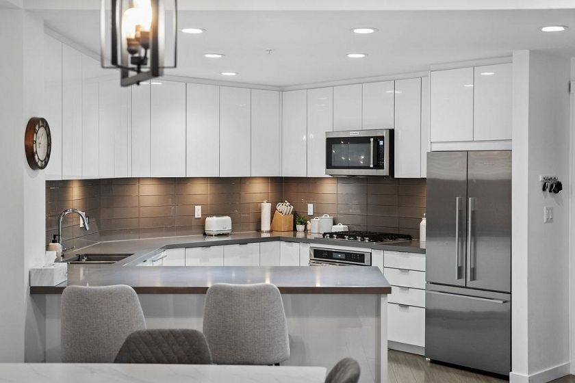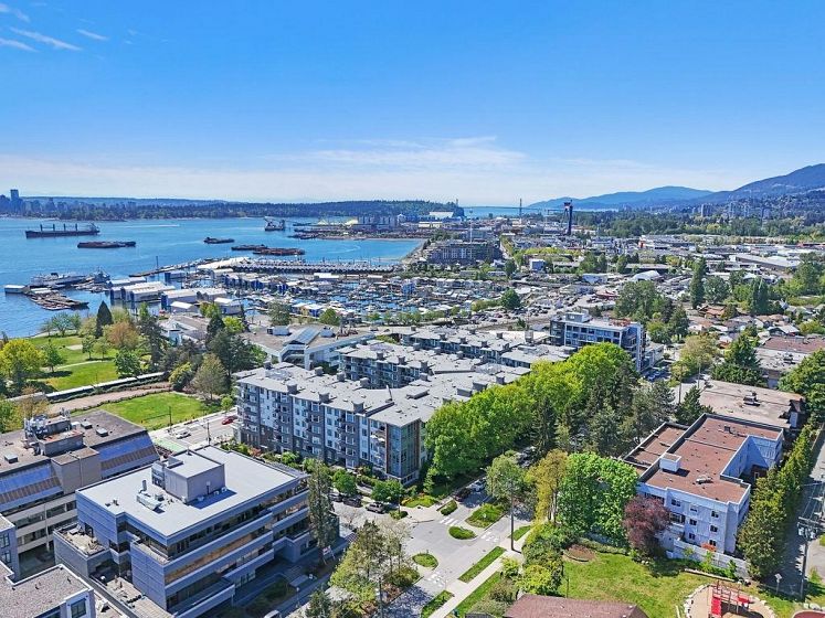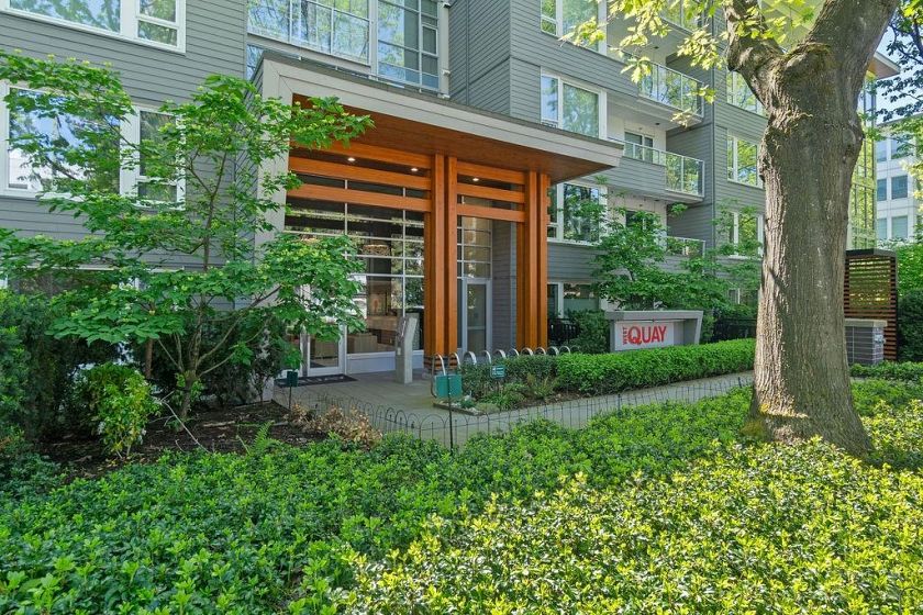 Welcome to WEST QUAY in the heart of Lower Lonsdale. This bright 2-bed, 2-bath with a superior layout features a functional layout with 9-ft ceilings, oversized kitchen, quality finishings, and radiant in-floor heating. Updates include new carpet in the bedrooms, new-style closet organizers, and a glass shower door in the main bathroom. Courtyard and water views from your private patio. Enjoy a spacious primary suite with ensuite, in-suite laundry, stainless steel appliances with gas stove. Steps to the SeaBus, transit, waterfront, Spirit Trail, The Shipyards, Lonsdale Quay, restaurants, shops & services. West Quay amenities include gym, bike room, social lounge, elevator & wheelchair access. Includes 1 parking & storage. Open House Saturday FEB 7th: 2-4PM