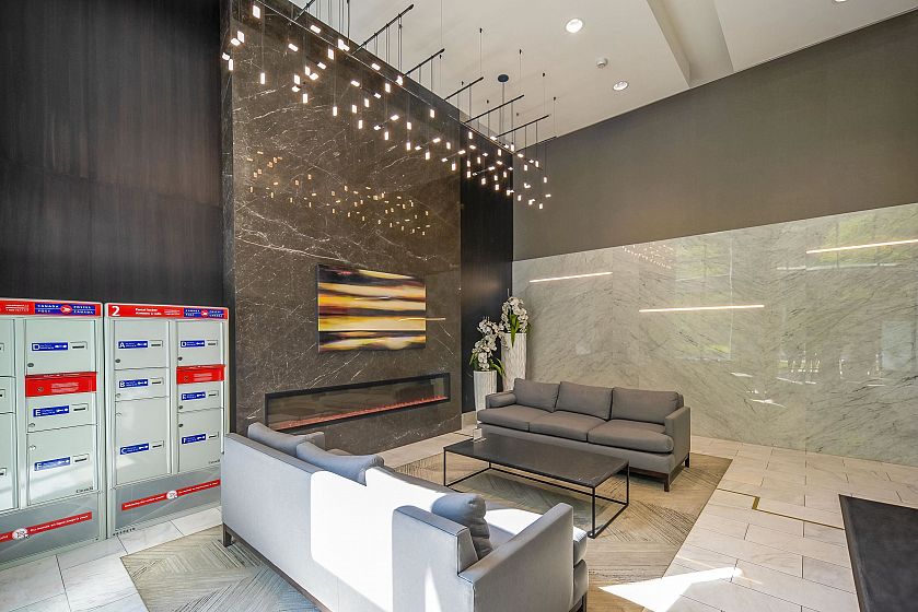 Eaton by Polygon - a prestigious parkside tower at UBC's Wesbrook Village. Designed by renowned architect Walter Francl, this community features dramatic landscaping and an impressive water feature. This Ocean View 2 bedrooms plus den 2-bath Southwest-facing home boasts A/C, Bosch appliances, a stylish kitchen and a generous deck. Bedrooms are located at the opposite ends of the home to maximize privacy. Enjoy the convenience of double sinks and a generous walk-in shower in the ensuite. Large private balcony with great ocean & mountain views. University Hill Elementary and Secondary School catchments. Walking distance to Transit, Wesbrook viliage Super market, resturant, bank. Natural forest by the building.