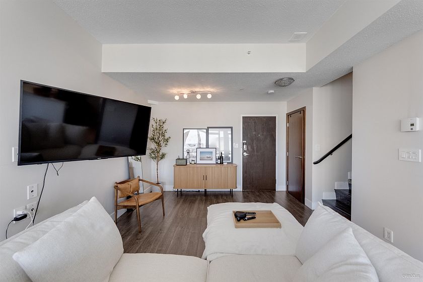 Rare Coal Harbour Penthouse | Stunning 2-level home with 180° panoramic ocean & mountain views from every room! This bright, west-facing suite features 9'5” ceilings, solid walnut doors/frames, new Miele & LG appliances, granite counters, and a custom walk-in closet. Enjoy sunsets from your spacious balcony overlooking English Bay & the North Shore mountains. Bedrooms are privately tucked upstairs; main living below. “The George” is a well-run building with gym, bike room, live-in caretaker & strong contingency fund. Steps to Stanley Park, seawall, & world-class dining. 2 Large side-by-side parking + 1 locker included.