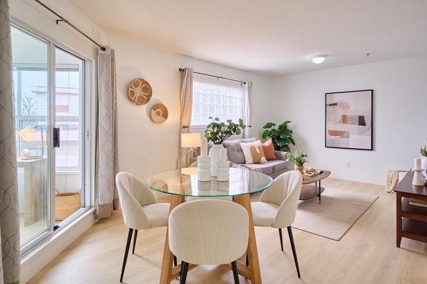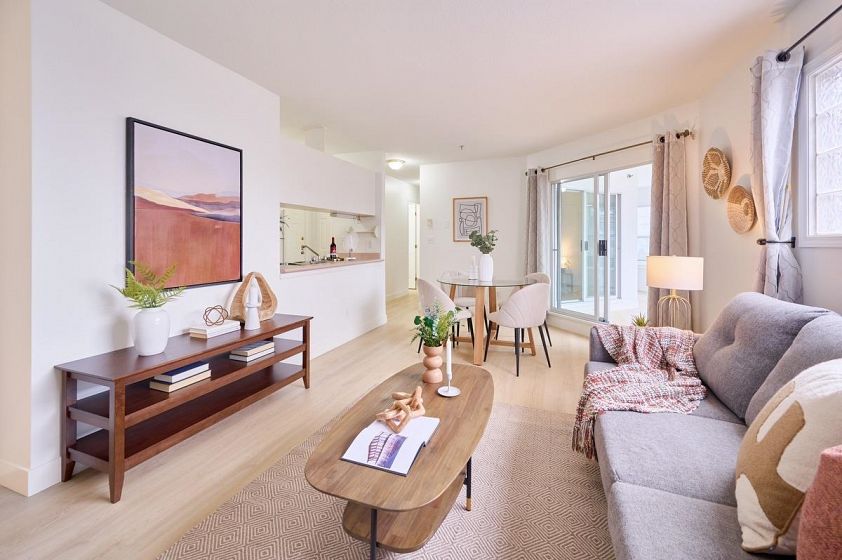 IDEAL for first-time homeowners or investors alike, this well-rounded property offers outstanding value! Get two bdrms + Den for the price of one. Tucked away on a quiet street in the sought-after Marpole community, this home is move-in ready with newly updated flrg & fresh paint. Bright & welcoming, the home boasts an open-concept design with a generous kitchen offering lots of cabinetry & counter space plus a large pass through to the cozy dining room! Great location near parks, transit, & Granville Street shopping, with quick access to UBC & downtown. Close to Churchill Secondary, Lloyd George Elementary, & Montessori Pre-School/French Immersion—ideal for families. Well maintained top floor unit with no shared walls, in a small bldg with low maint fees. Incl. 1 secure parking. A/O