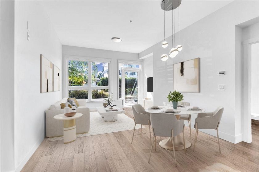 Welcome to Aster, an exclusive collection of 19 spacious two- and three-bedroom residences ideally situated in the heart of Vancouver's vibrant Marpole community. This walk-up suite showcases open concept living, elegant finishes, and a huge ground level patio. Unit 101 offers an expansive two-bedroom plus flex floor plan with impressive 10-foot ceilings, creating an airy, open feel throughout. This beautifully appointed home includes one parking stall and one storage locker for your convenience.Enjoy a connected lifestyle surrounded by a diverse array of everyday amenities, picturesque parks, and some of Vancouver's top schools-all just steps from your door.