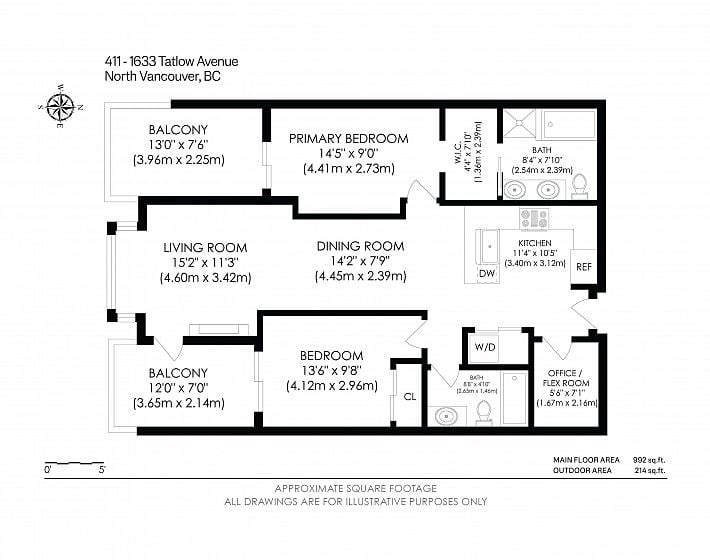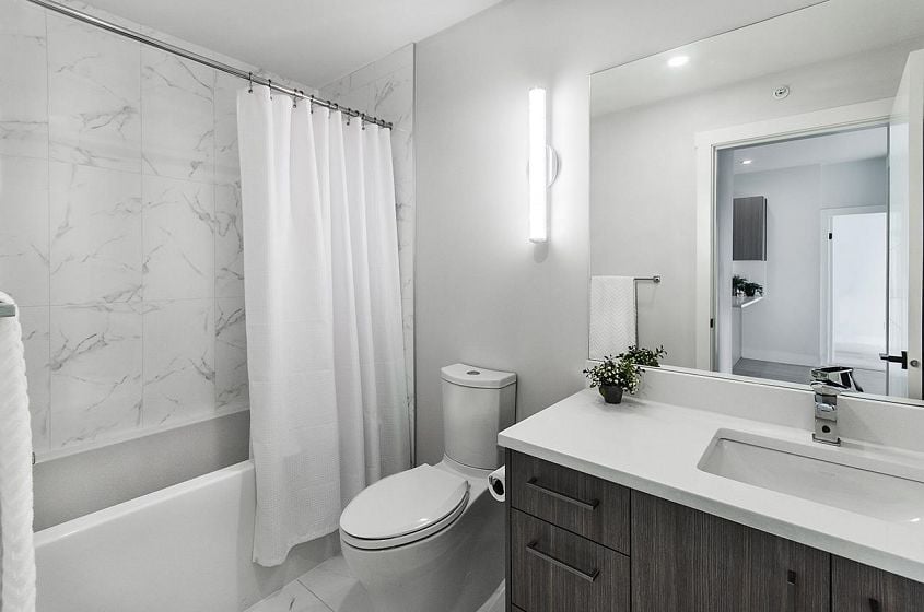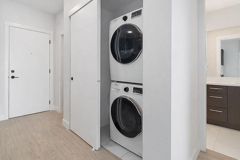 Top-floor living at Tatlow Homes, this bright penthouse offers 2 bedrooms, 2 bathrooms, and a smart den ideal for a home office. Thoughtfully finished with quartz countertops, laminate flooring, full-size stainless steel appliances, and modern roller shades. Oversized bay windows flood the space with light, while two private balconies showcase sweeping views toward Downtown Vancouver. The generous primary suite includes a walk-through closet and spa-like ensuite with dual vanity, soaker tub, and frameless glass shower. Steps to Park Royal, Ambleside Beach, and Lions Gate Bridge. Includes 1 parking and 1 locker. OPEN SAT JAN 31 1:30 - 3:00.