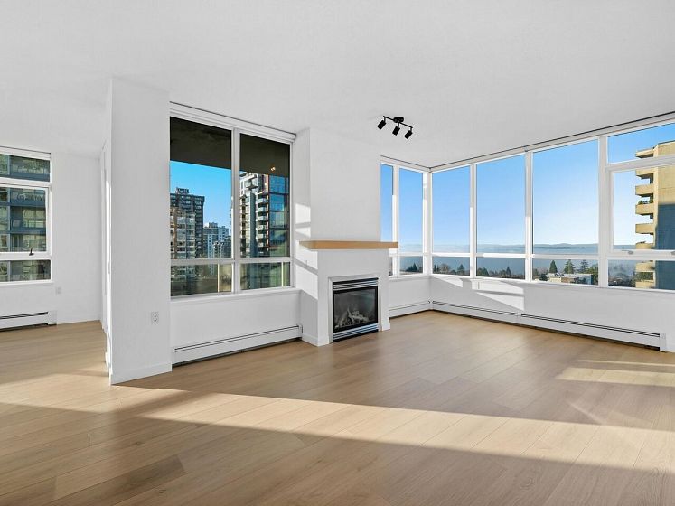 Spectacular 2 Bedroom, 2 Bathroom at The Symphony! The views are breathtaking, with Lions Gate Bridge, Downtown Vancouver and the Straight of Georgia. Enjoy the most stunning sunsets from your own balconies (yes, there are two). This concrete building has only four homes per floor and is located right at the center of Lonsdale. Bonus-TWO parking stalls! Unlimited shopping, transit, restaurants, and all amenities just outside your door. This home boasts 1166 sq.ft. of completely renovated living space. New paint, and flooring throughout makes this home turn-key and ready to move in. Gas fireplace, newer appliances, in-suite laundry and a bright, open floor plan complete your "must have" list!
