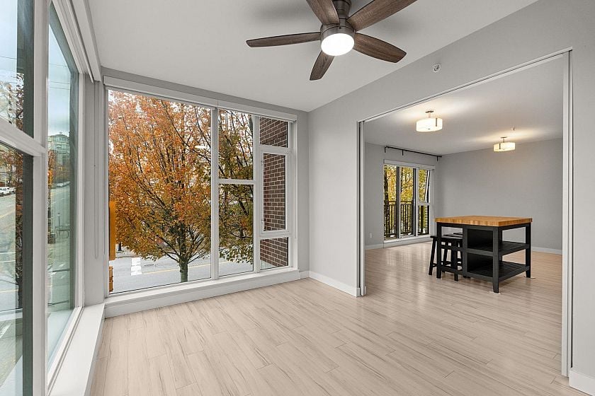 Welcome to the Versatile building where North Shore meets downtown convenience. Built by Intracorp and beautifully designed, this bright N/W corner unit offers floor to ceiling windows, in-floor radiant heating, quartz countertops, stainless steel appliances and looks like new. Offered as a 2 bedroom but technically 1 large bedroom and a huge bright den with windows and an alcove perfect for a small closet. 1 bathroom with a soaker tub. EV ready. Centrally located at Lonsdale and 3rd, you can walk to coffee shops, restaurants, Lonsdale Quay and Seabus within minutes. Some photos virtually staged. OPEN HOUSE: SATURDAY, FEBRUARY 7th: 1 - 4 pm | SUNDAY, FEBRUARY 8th: 1 - 4 pm