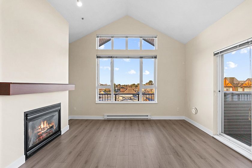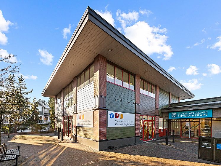 Rare opportunity to own a top-floor 2-bedroom + den, 2-bathroom corner home offering 928 sq ft of beautifully designed living space in the heart of Champlain Heights. This northeast-facing residence features a bright open-concept layout, impressive 12’5” ceilings in the living room, a gas fireplace, and expansive living and dining areas that open to private balconies with stunning mountain views.The primary suite includes two closets and an ensuite complete with a soaker tub. Comes with 1 parking stall. Enjoy an unbeatable location just steps from Champlain Square Shopping Centre, Killarney Community Centre, parks, schools, library, and public transit. An ideal home for families, professionals, or downsizers seeking space, comfort, and convenience.