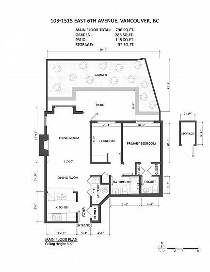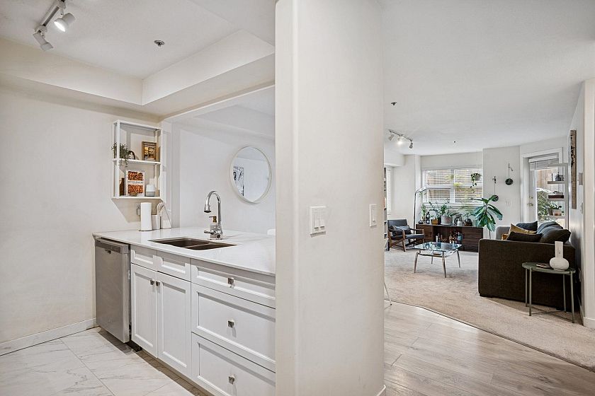 Welcome to Woodland Terrace, a well-managed boutique building with just 19 units, ideally located just off The Drive. This beautifully renovated, quiet, two bedroom, 1.5 bath garden-level apartment is a short stroll to VCC-Clark and Commercial-Broadway SkyTrain stations, cafes, restaurants, shops and park. Updates include a newer kitchen with quartz countertops and stainless steel appliances, in-suite laundry, updated bathrooms and lighting. Cozy living room with gas fireplace and lots of windows. A rare highlight is the landscaped, private 146sf patio with cedar fencing, designed to feel like your own mini backyard, with bonus gardening space. Fully rainscreened building with one parking & a large storage locker included. Pets allowed. Move-in ready.