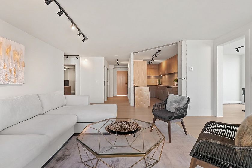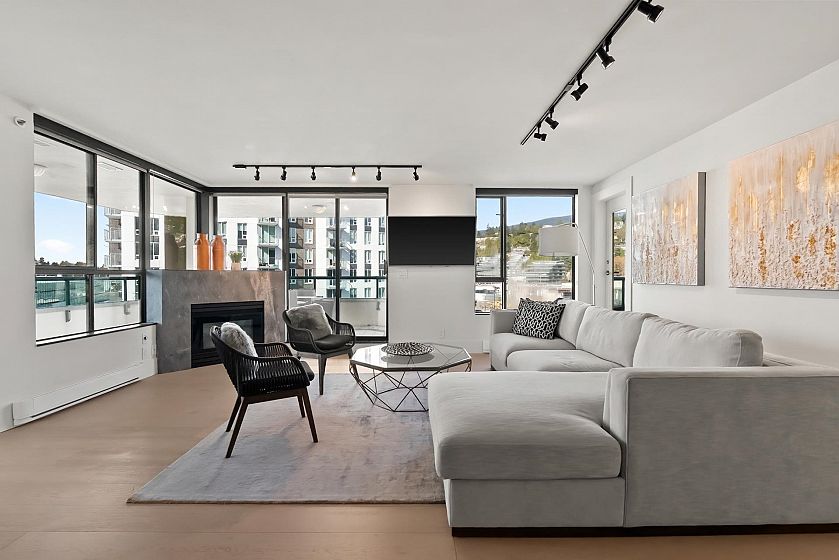 Welcome to one of West Vancouver's most established concrete residences. This extensively remodelled 2-bed/2-bath corner home at 'Westroyal' offers a spacious 1,286sf open-concept layout designed for both comfort & entertaining. Floor-to-ceiling windows fill the home w/natural light, offerin outlooks of sunset skies, mountain silhouettes, & peek-a-boo views of the Lions Gate Bridge & Burrard Inlet. The interior feats high-end finishes, incl upgraded flooring & modern chef's kitchen. The primary suite incl a WIC & spa-inspired ensuite w/jetted soaker tub. 2 parking stalls & storage locker. Residents of The Westroyal enjoy resort-style amenities incl indoor pool, hot tub, sauna, fitness centre. Quick access to downtown Vancouver, steps to shopping & dining at Park Royal and Ambleside Beach.