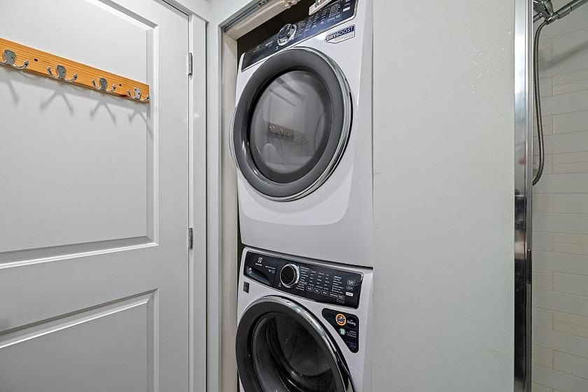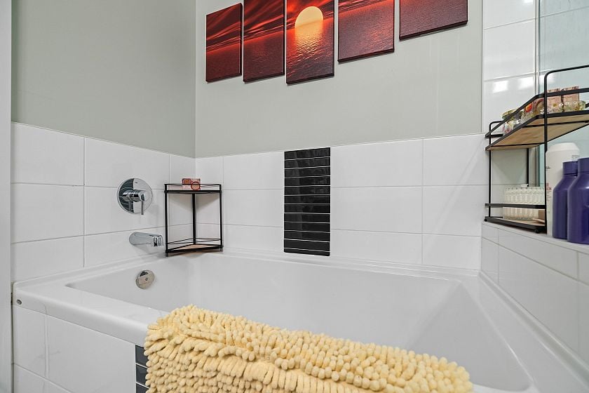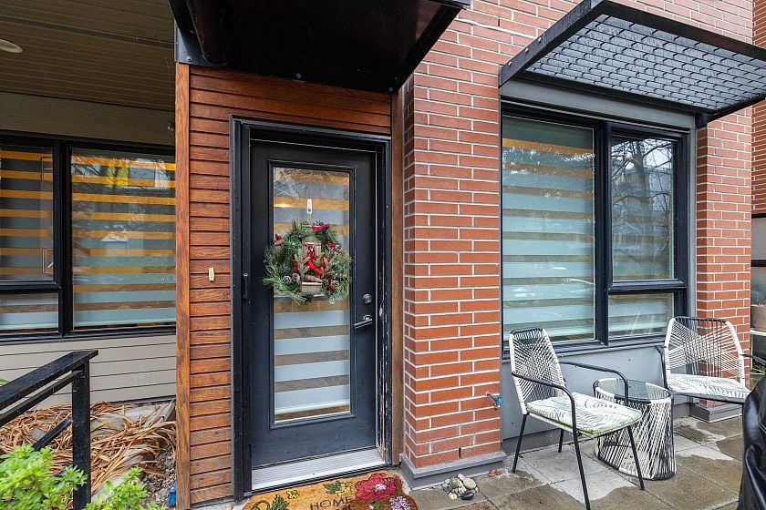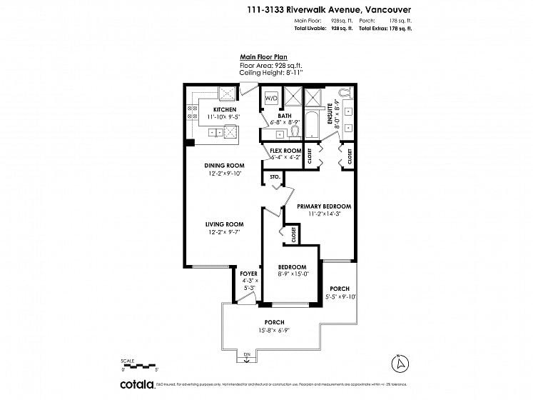 Welcome to New Water by Polygon in the popular River District community. This updated 2 bedroom + flex home offers a rare feature—private street-level access directly from your front door, giving you the convenience of a townhome-style entry with the security of condo living. Ideal for pet owners, cyclists, and anyone who values easy in-and-out access. The layout provides separated bedrooms, a useful flex room, and a spacious living area that opens to a large patio. New flooring was installed in 2024. The primary bedroom includes a walk-through closet and a spa-inspired ensuite with double sinks, a soaker tub, and a separate shower. Building amenities include an exercise studio and meeting room. Steps to trails, parks, shops, restaurants, and the waterfront.