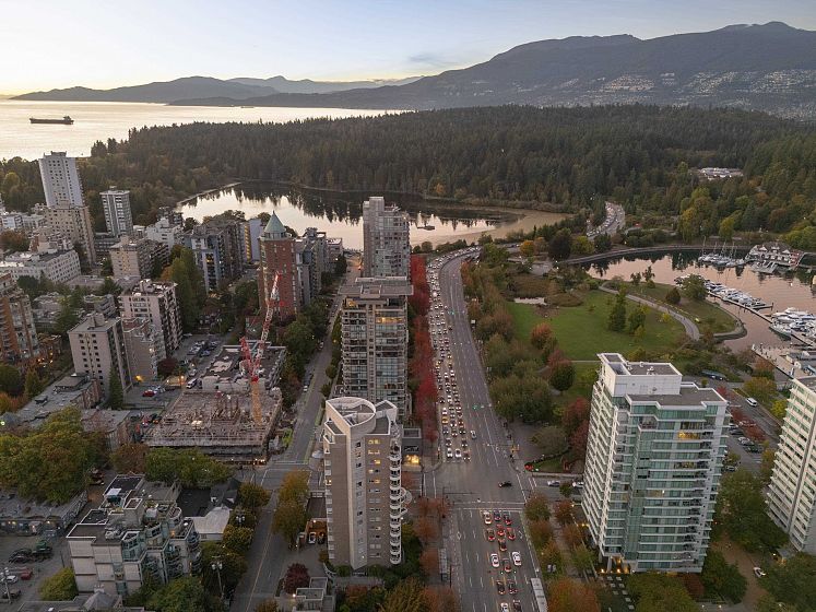 Welcome to Devon Gate - Coal Harbour exclusiveness meets West End charm. With only 2 units per floor and 27 total homes, you are ensured the upmost privacy and prestige. OVER 400sqft of private PATIO SPACE, offering secure outdoor enjoyment rarely found in the citycore. With 3 side exposure (North, South and West), the interiors are bathed in natural light with serene outlooks toward Stanley Park and the North Shore Mountains from the living and dining room. The building provides air conditioning for all season comfort while placing world-class dining, shopping, urban conveniences and PARK right at your doorstep. 2 Parking and 1 Locker incl.! A truly unique and remarkable offering in one of Vancouver’s most sought-after locations.